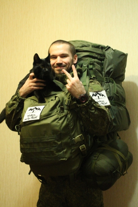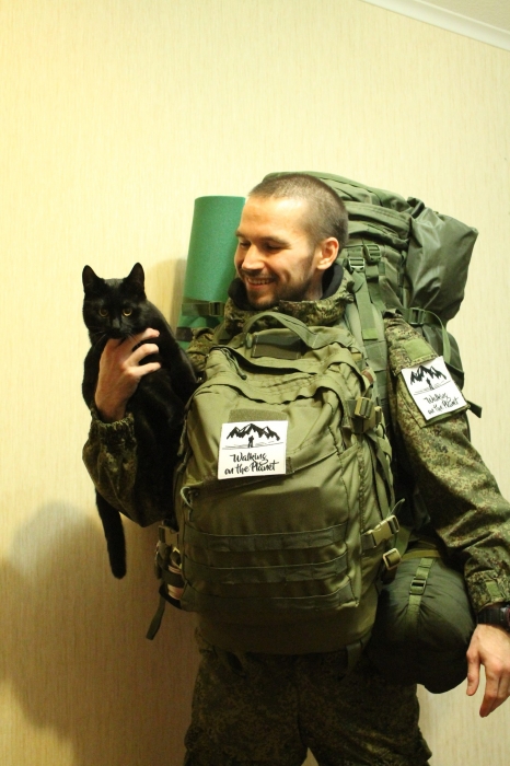 Кота Сэма я подобрал на улице, и с трех месяцев он бывает со мной в походах: любит природу, его не пугают дождь и долгие прогулки. Меня его присутствие уберегает от лишнего риска: я нон-стопер, мне нравится проверять себя на прочность, а кот не позволяет переходить грань. Забочусь о нем больше, чем о себе — перед тем, как что-то сделать, в первую очередь думаю, каково будет Сэму. И если есть какой-то риск, лучше перестрахуюсь. В путешествии ему комфортно, в палатке он чувствует себя так вольготно, что точит об нее когти. Уже расцарапал один угол, приходится накрывать его тентом. В дороге Сэм сидит в рюкзаке — укутываю его в одежду, а если приходится долго стоять на морозе, грею руками.