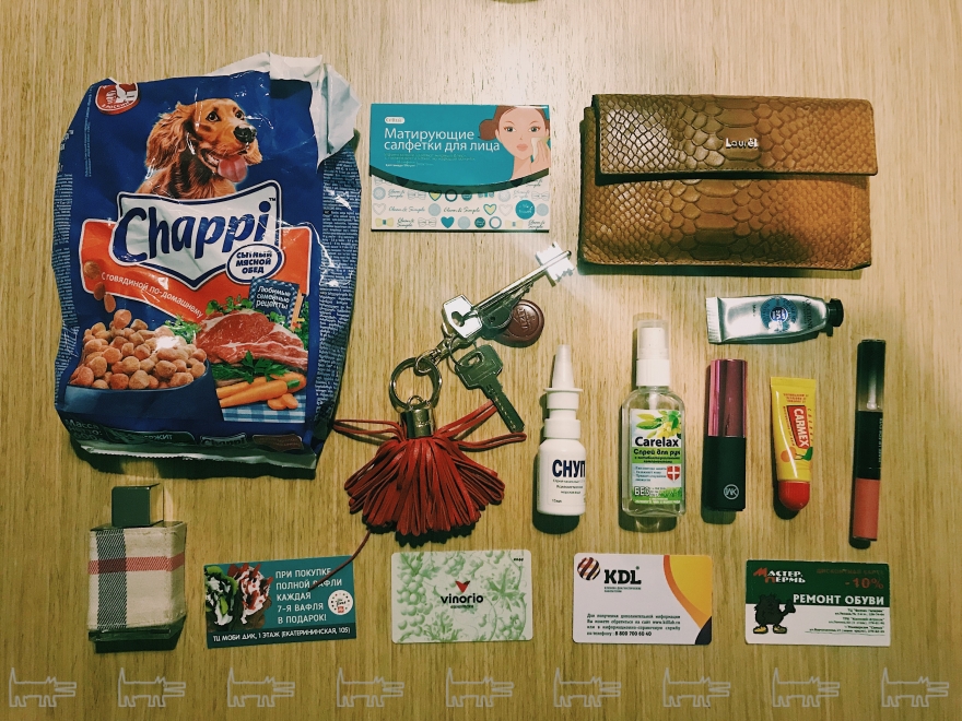 - Собачий корм (не могу пройти мимо замерзающей голодной собаки. Особенно в морозы в моей сумке всегда есть, чем угостить бродяжку)