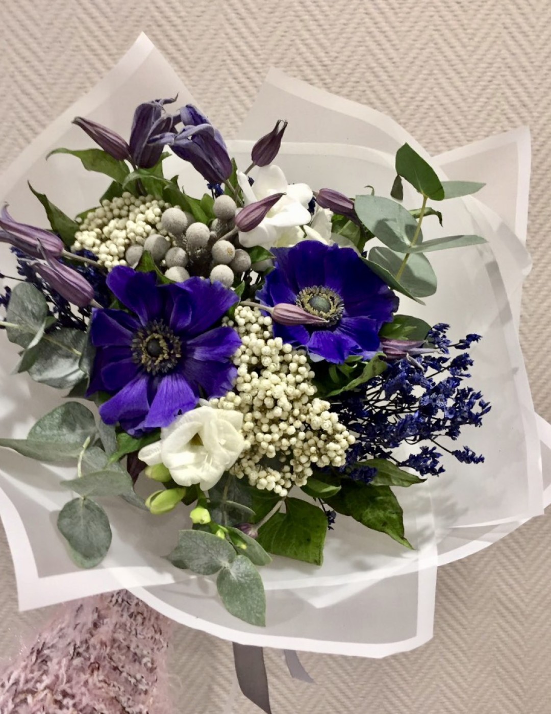 У специалистов мастерской всегда есть огромный выбор свежих цветов для больших букетов и маленьких милых композиций – от экзотики до обычных роз – и модные в этом сезоне сухоцветы – от ароматной лаванды до пушистого лагуруса и черной пшеницы. Букеты из сухоцветов флористы оформляют в вазах из черного или серебристого стекла, в керамику и даже чайные кружки.