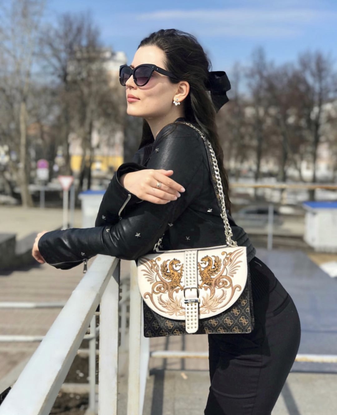 Два телефона, портативная зарядка, паспорт, документы на машину, ключи от дома и от машины, карандаш и гель для бровей, помада и увлажняющий бальзам, расческа, таблетка от головы, наушники, антисептик, ручка, блокнот.