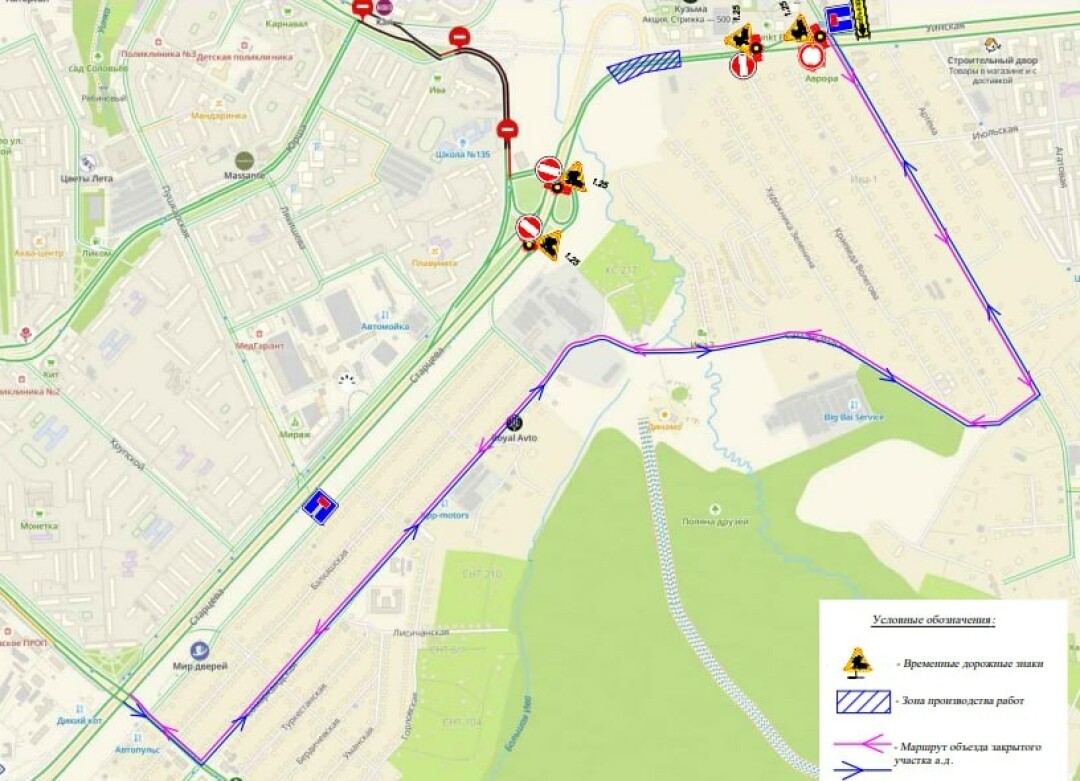 Объезжать закрытый участок автомобилистам предлагают по улицам Самаркандская и Грибоедова.