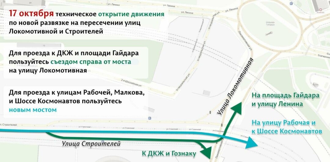 Транспорт пустят через правый съезд с моста для проезда на Локомотивную. Движение в сторону тоннелей будет регулироваться светофором. Также откроется проезд по мосту в обоих направлениях. Как объяснили в пресс-службе минтранспорта, это облегчит сообщение между шоссе Космонавтов и микрорайоном Парковый.