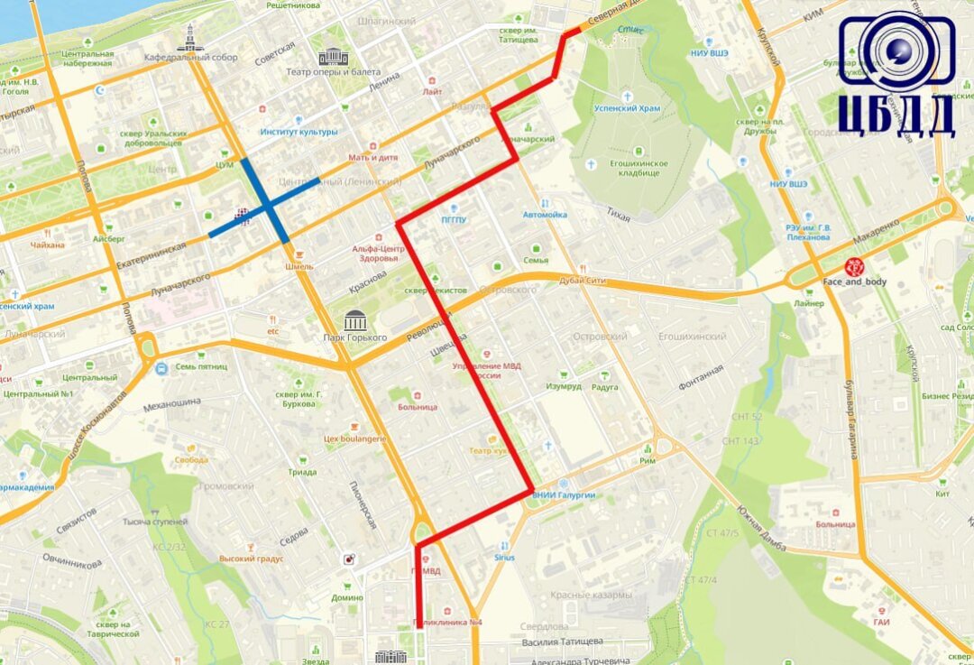 С 19:00 7 мая по 13:00 8 мая будет ограничено движение транспорта в Свердловском районе на: