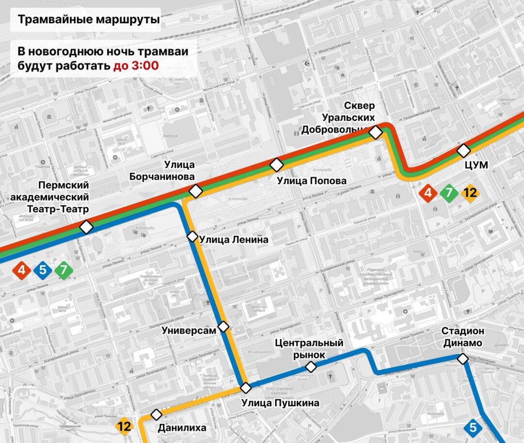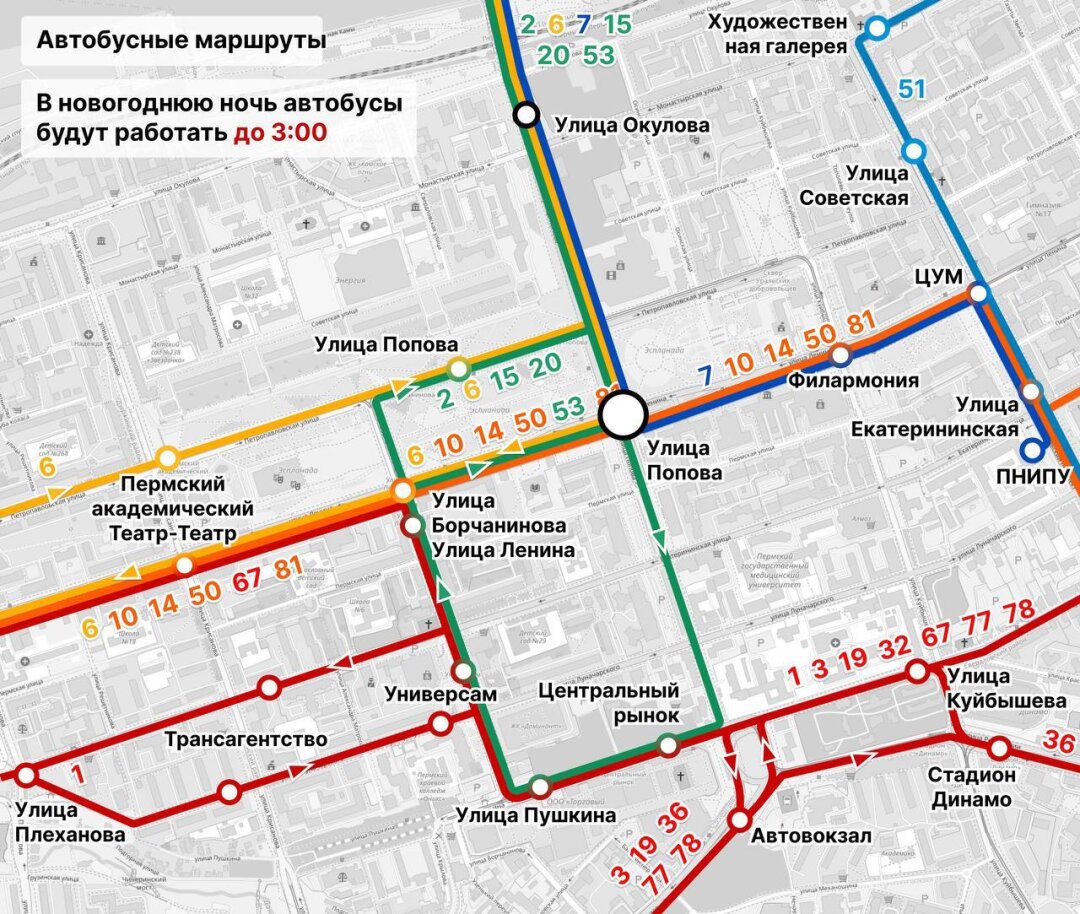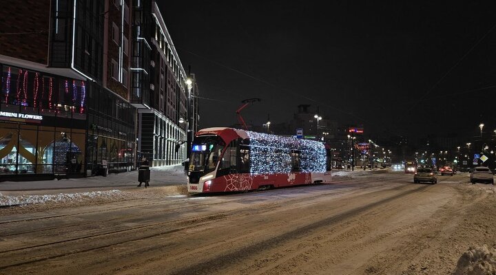 В новогоднюю ночь в Перми продлят работу общественного транспорта. 20 автобусных и три трамвайных маршрута будут курсировать до 03:00 1 января.