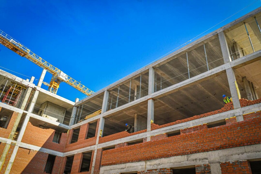 Сейчас строители монтируют каркас, бетонируют монолитные участки, проводят утепление цокольных панелей, делают кирпичную кладку стен и перегородок 2 и 3 этажей. Сдать объект намерены в декабре 2025 года.