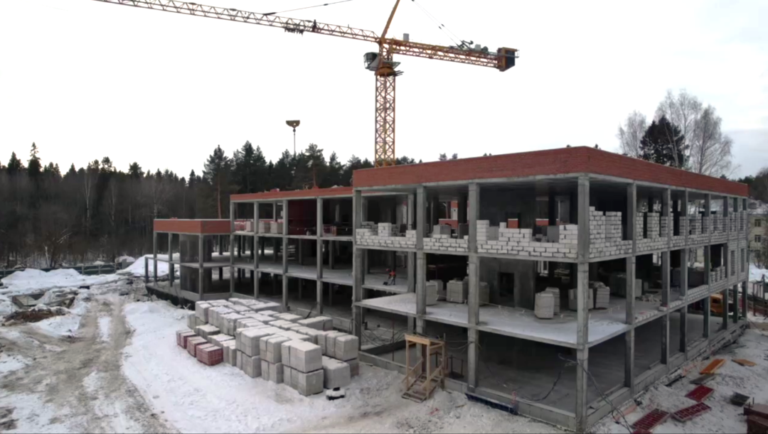 Как рассказали в пресс-службе министерства строительства, сейчас рабочие закончили возводить трехэтажный каркас. Теперь они приступили к кладке наружных стен и перегородок. Закончить строительство планируют в 2026 году.