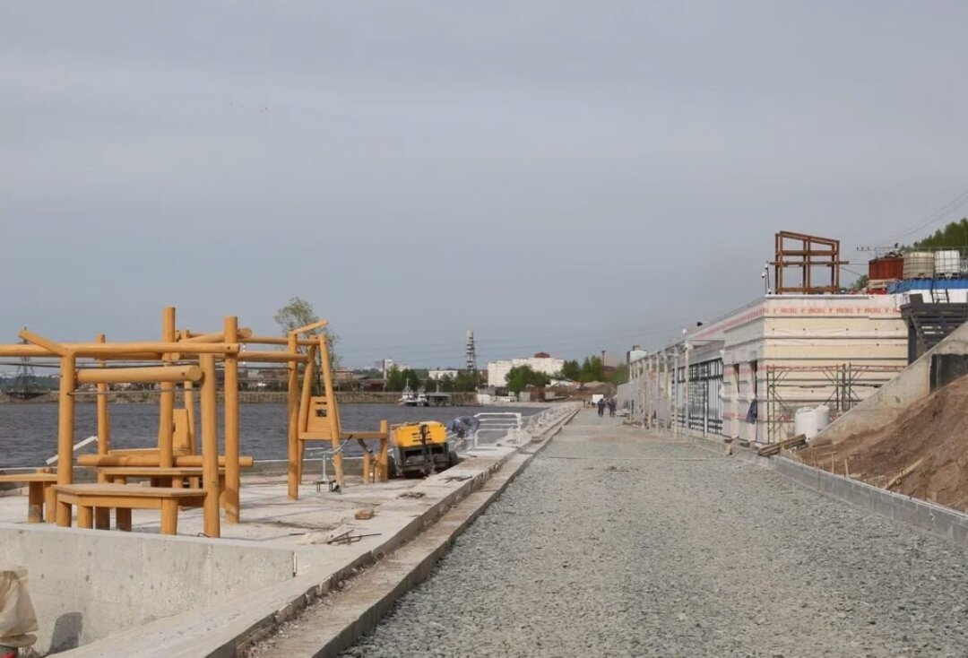 Вместе с тем на стройплощадке нового участка набережной обустраивают детскую площадку, зоны отдыха и трек для катания. Рабочие готовятся устанавливать навигационные стенды и туалетные модули.