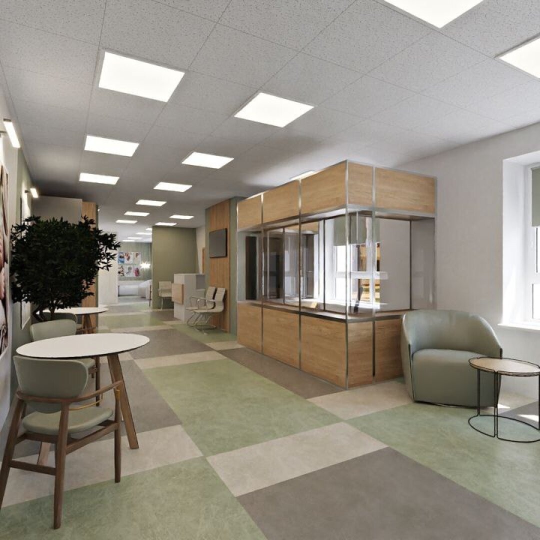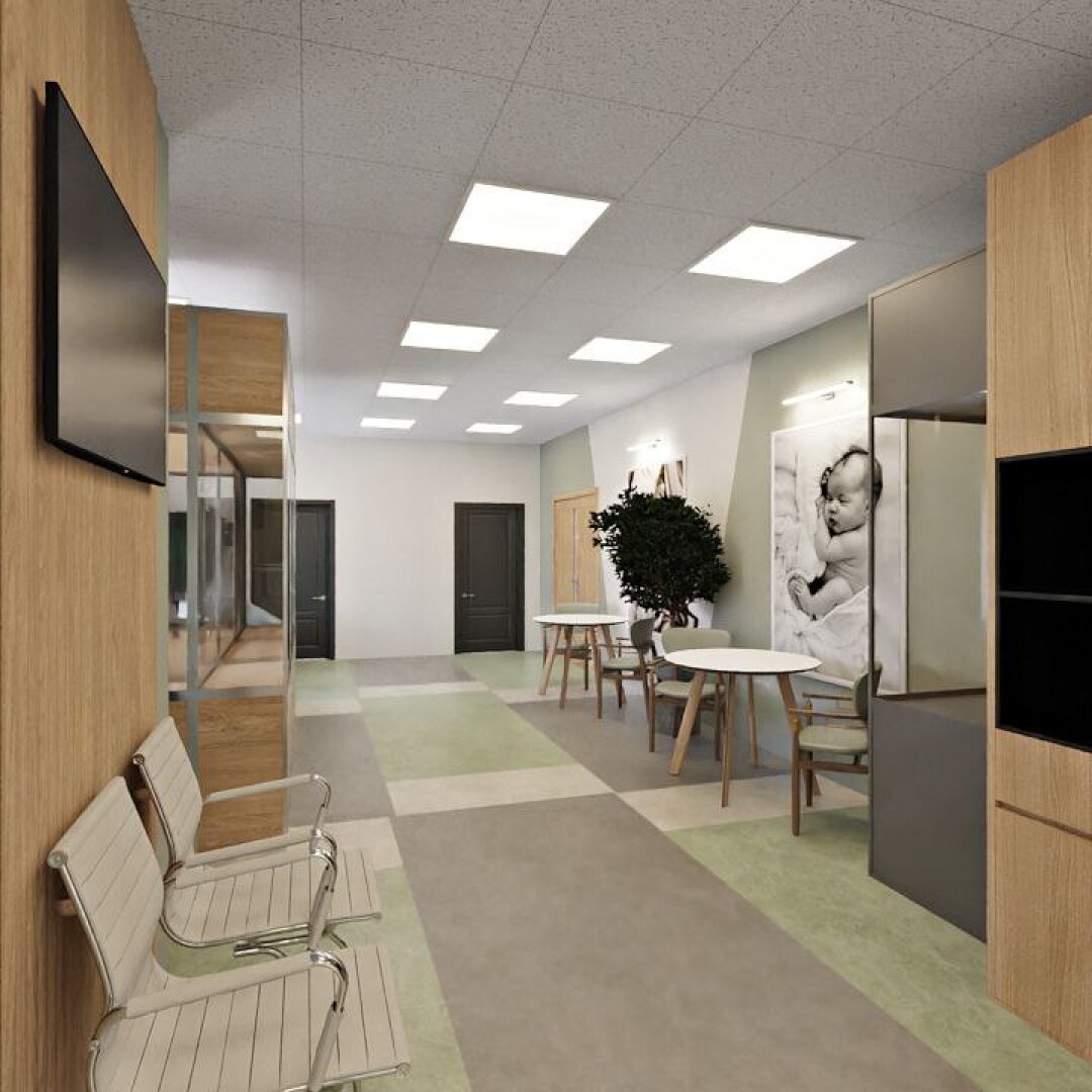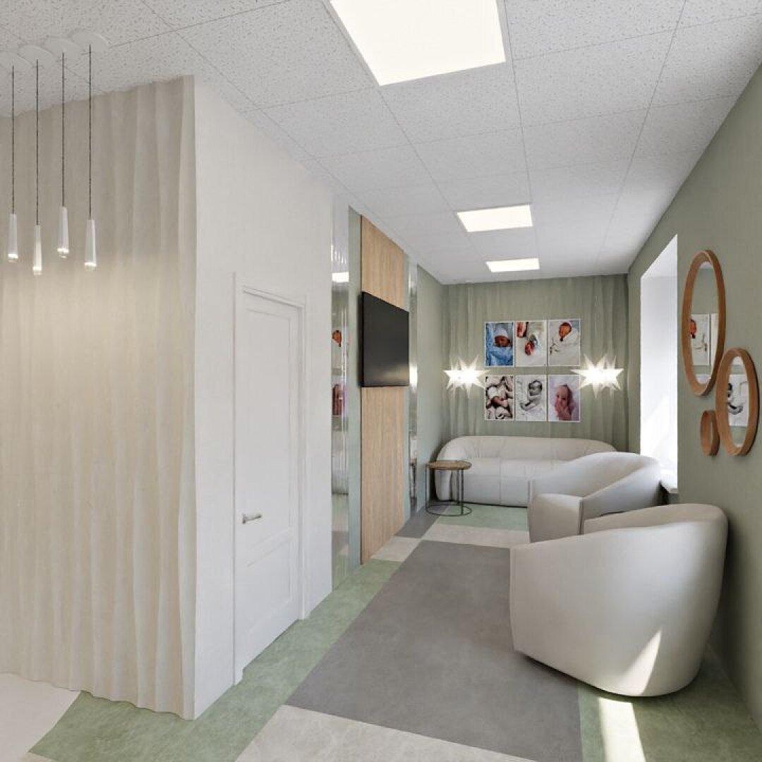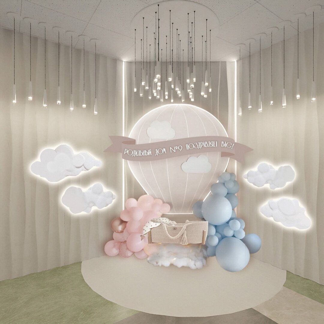 Появилась визуализация обновленного пространства для выписки новорожденных и мам из роддома при больнице №9 им. Тверье. Это один из возможных вариантов.