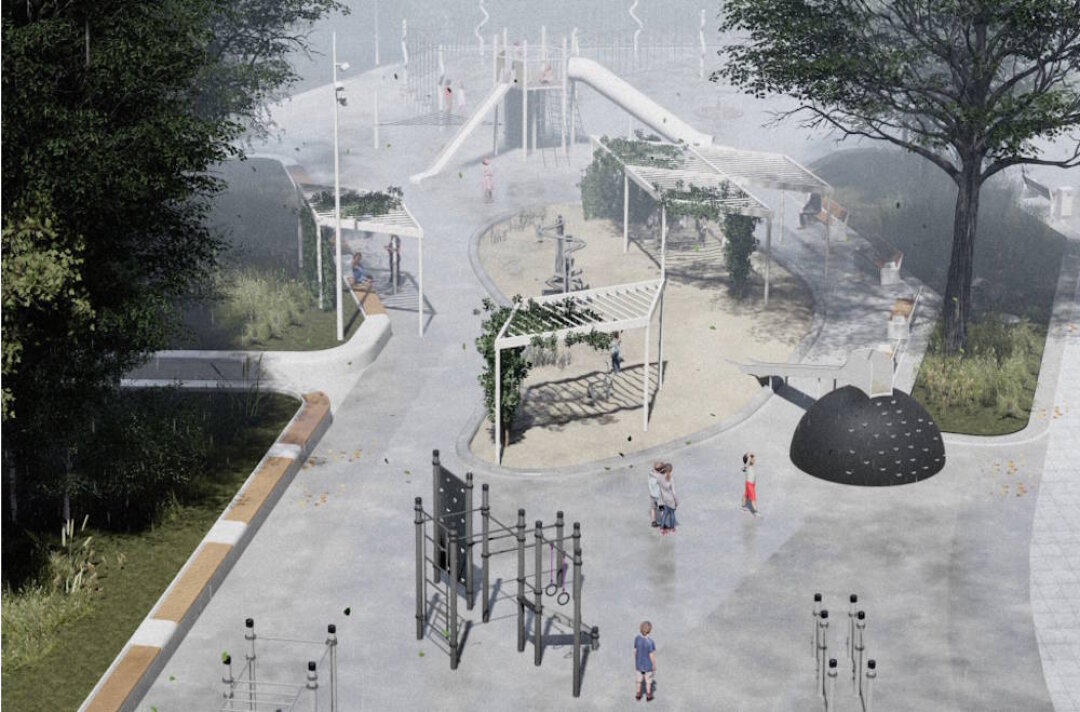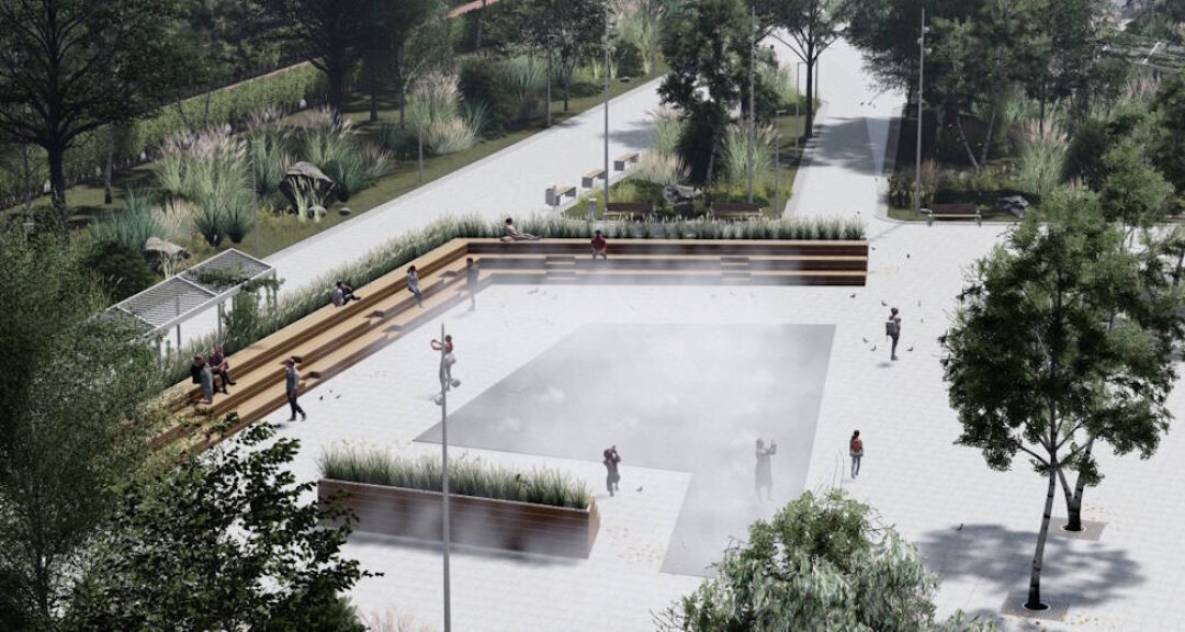 Проект предполагает, что в новом сквере появятся несколько зон: для тихого отдыха, для детских игр, для прогулок. Пространство должно также включать центральную площадь с фонтаном и бюстом Александра I, а также аллею с березами и парковку.