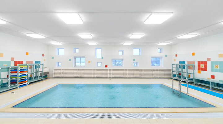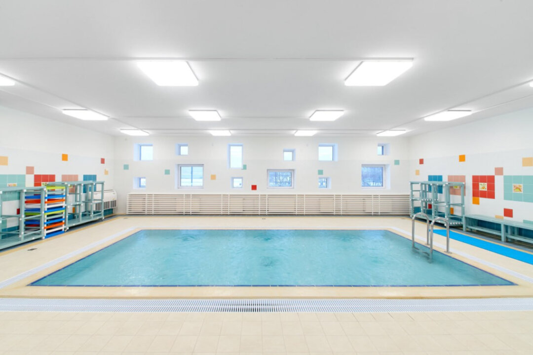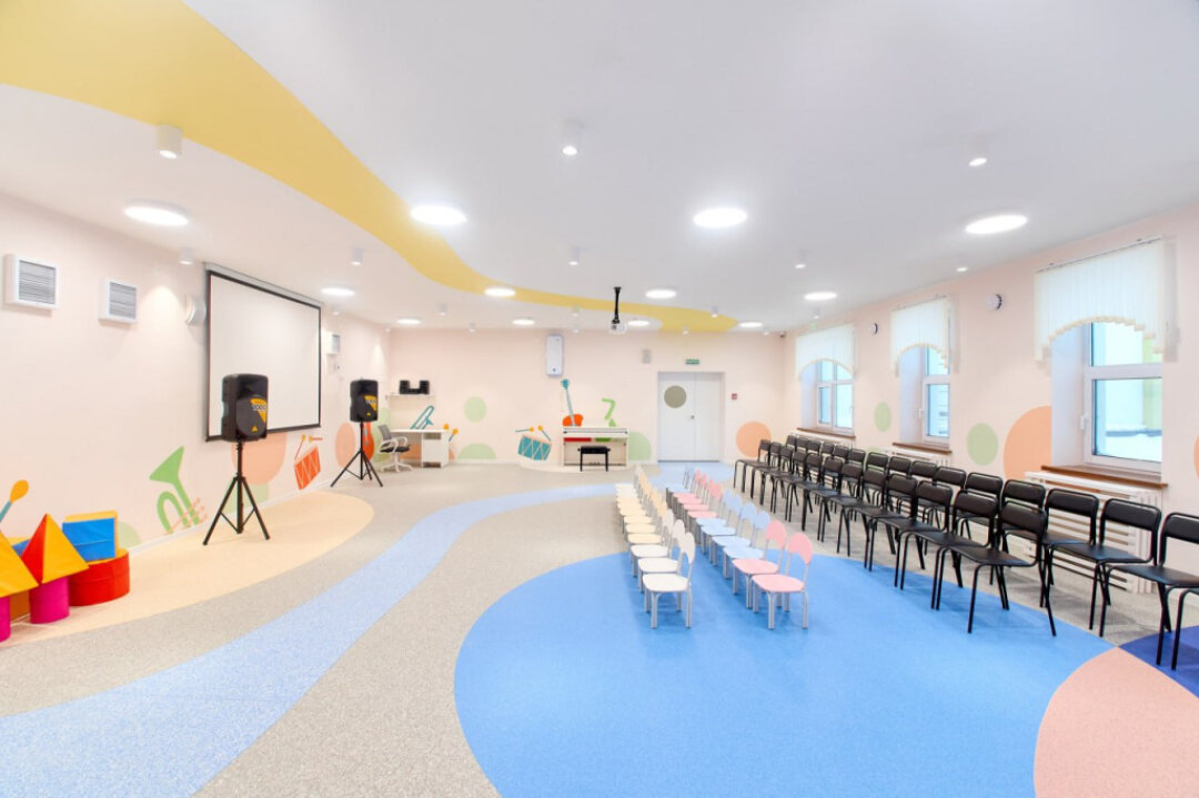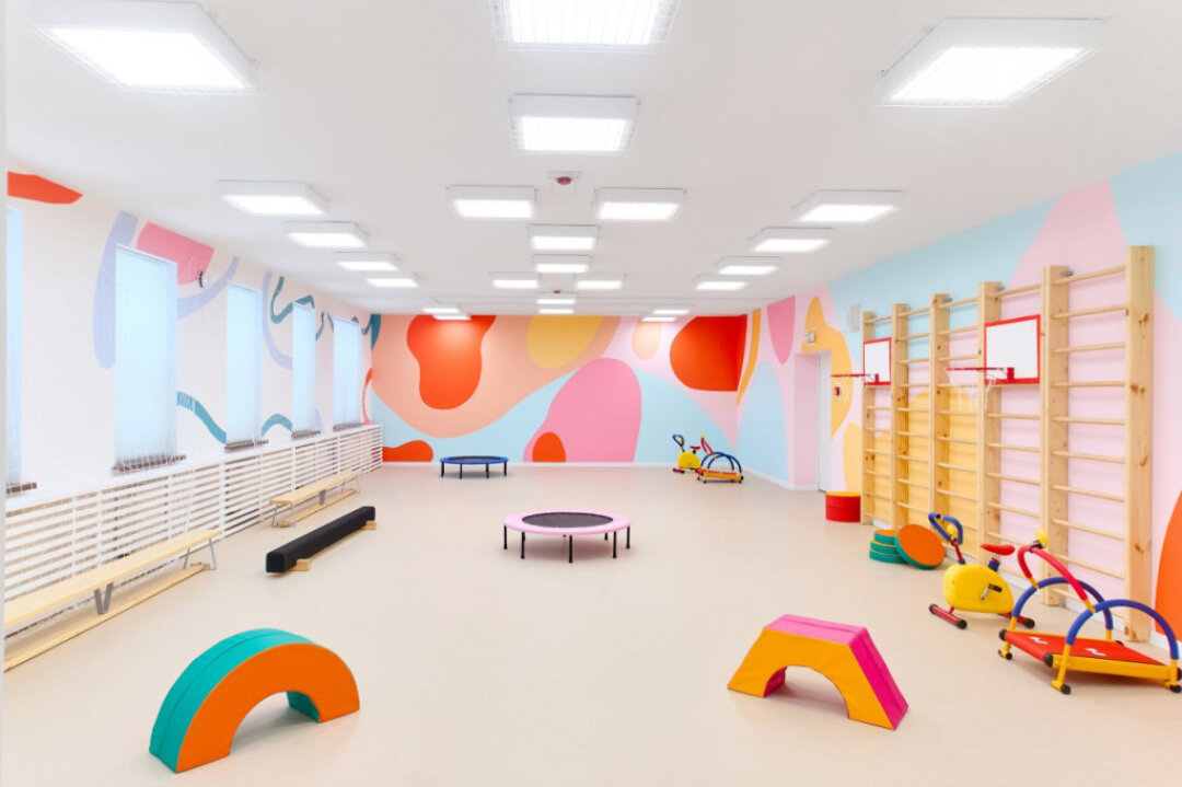 В саду обустроен физкультурно-оздоровительный центр с бассейном, спортивный зал с современным оборудованием, а еще галокамера — помещение, схожее на соляную пещеру. Планируется, что дети пойдут в новый сад осенью 2026 года.