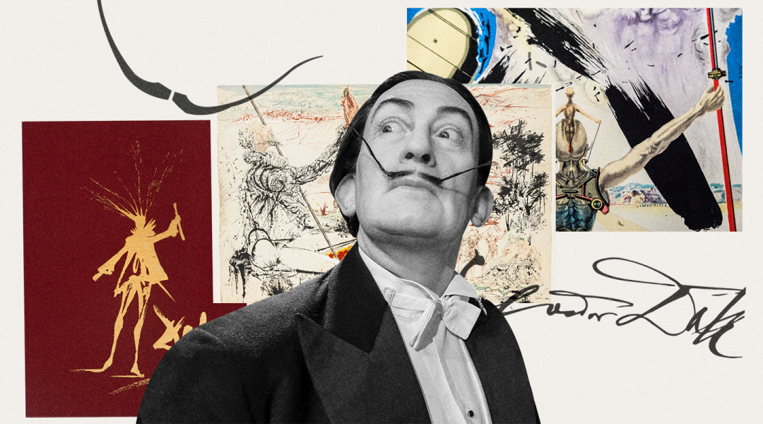 В литографиях к «Дон Кихоту», выполненных в придуманной им технике «булетизма», художник как будто подсмеиваться над им же самим созданной легендой о себе (шел уже 1957 год — расстреливает основу литографии шариками с тушью из аркебузы XVI века, рисует рогами носорога, улитками и даже живыми лягушками. Все это было задокументировано журналистами, что выводит мистификацию на новый уровень, как и сам концепт «автоматического» письма/рисунка; но где здесь искренность, а где — подтрунивание над отцом-основателем сюрреализма Бретоном и другими адептами, на тот момент уже изгнавшими Дали из своих рядов, понять невозможно.