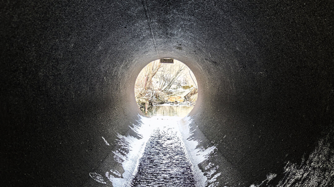 В коллекторе реки Стикс у Егошихинского кладбища появился новый арт-объект. Он называется «Выдох» и посвящен теме прохождения долгого и тернистого пути к тому, «чтобы заново увидеть мир».