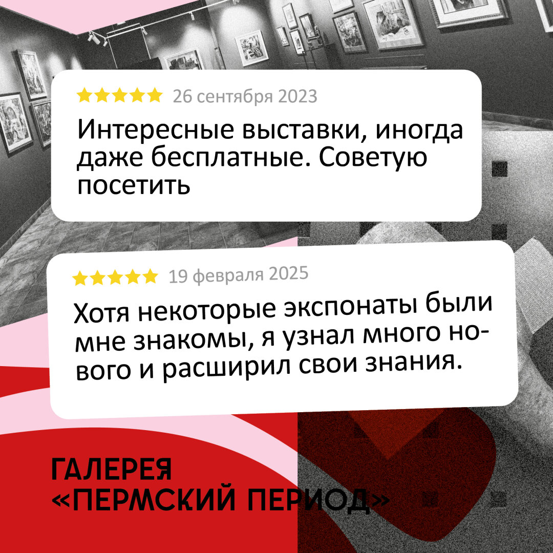 Художественная галерея «Пермский период» — культурный некоммерческий проект, открытый в 2020 году. Она объединяет всех художников, чье творчество в какой-то момент их жизни было связано с Пермской землей, ее традициями и историей.