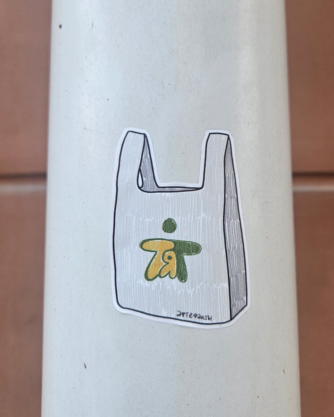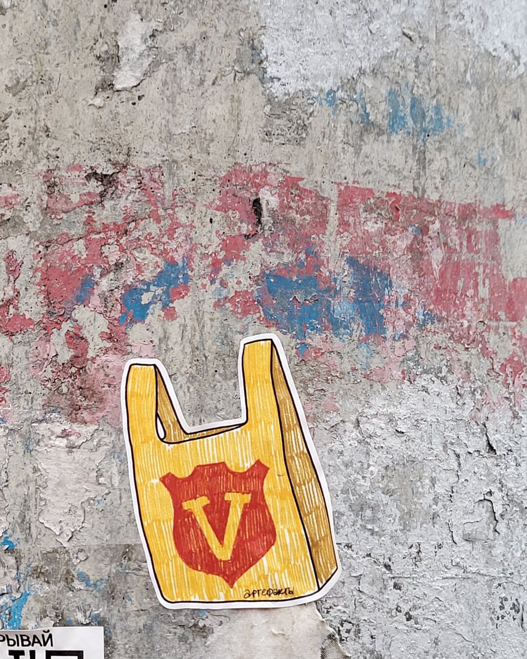 На улицах начали появляться «артефакты» — стикеры с пакетами «Вивата» и «Семьи». Редакция «Прм.Собака.ru» нашла их автора и выяснила, зачем они нужны.