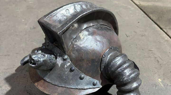Кунгурский кузнец Антон Киряков создал копию шлема из советской комедии «Джентльмены удачи». Теперь его ждет окрашивание в золотой цвет и отправка в Москву.