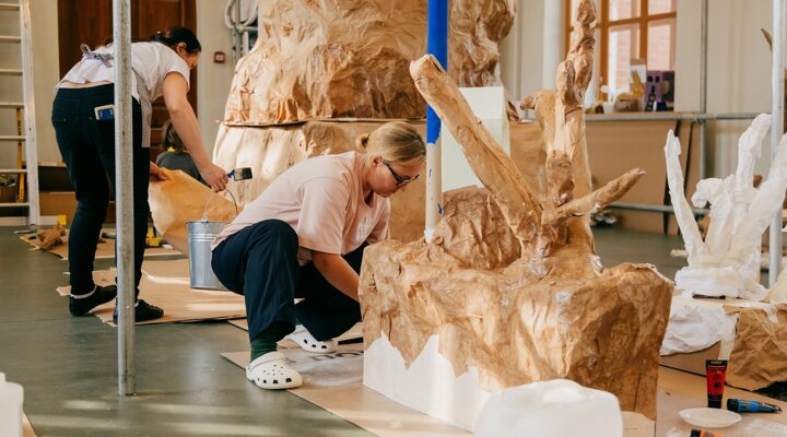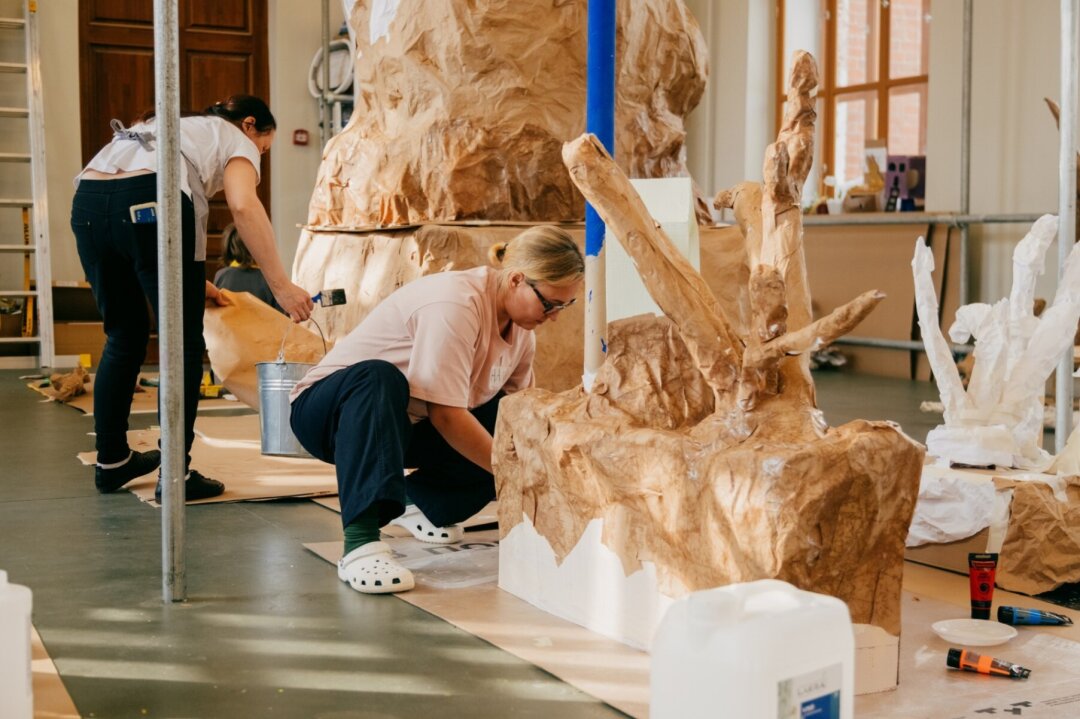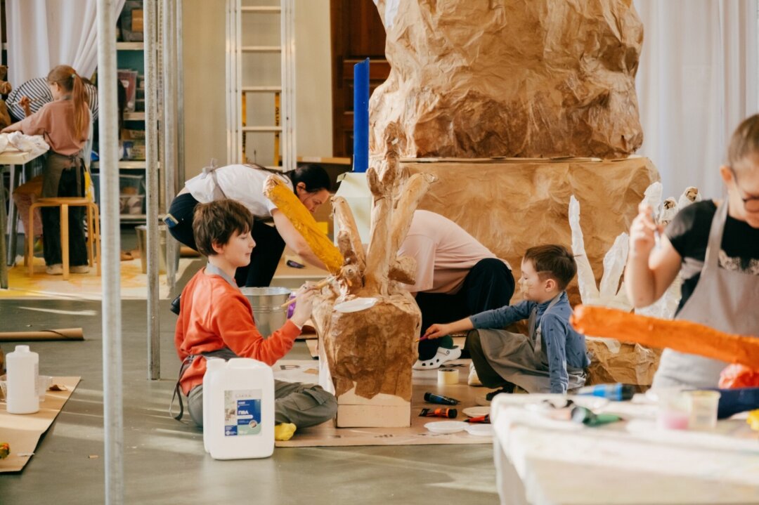 Авторы проекта воссоздавали дно древнего моря, где миллионы лет назад находилась Пермь. Во время арт-лаборатории участники создали из папье-маше и воздушного пластилина кораллы, водоросли и разные живые организмы, которые могли бы обитать там.