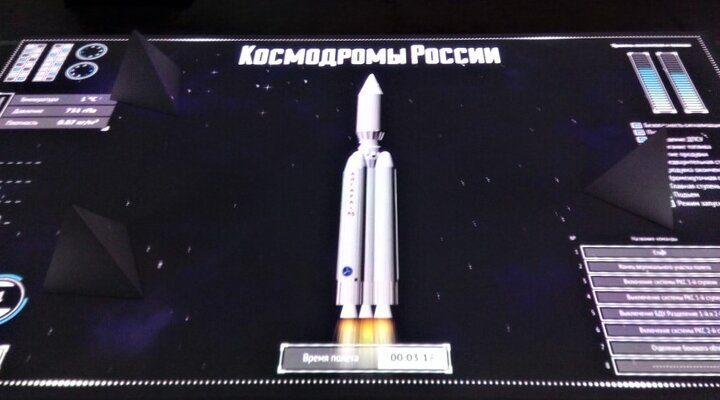 На выставке можно будет взглянуть на Солнечную систему «со стороны», с высоты орбиты посмотреть на Луну и на планеты, до которых долетали советские станции, расставить по карте страны космодромы и «запустить» ракету с одного из них.