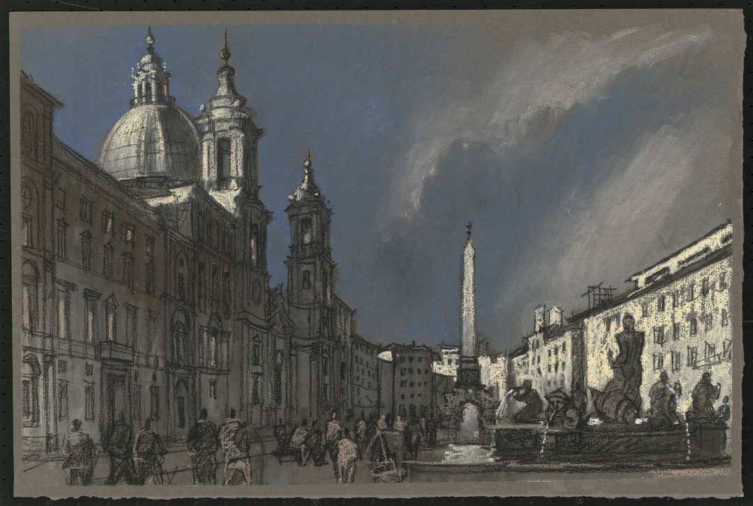 Легендарная борьба двух гениев барокко, Джана Лоренцо Бернини и Франческо Борромини часто велась на общей территории. Они то и дело сталкивались в одних и тех же проектах. Франческо Борромини приходился родственником автора фасада собора Святого Петра Карло Мадерна, надеялся взять на себя руководство работами после его смерти и неприятно удивился, когда заняться этим пригласили Бернини. Следующий шанс Борромини выпал на Пьяцца Навона, когда после смерти Урбана VIII римским папой Иннокентием X стал Джамбаттиста Памфили. Он был в полушаге от того, чтобы поручить Борромини реконструкцию всей площади. Вытянутая площадь на месте бывшего стадиона как будто специально была создана для того, чтобы превратиться в барочный ансамбль. В первую очередь Борромини поручили заняться расширением самого дворца Памфили, закончить строительство церкви Святой Агнессы и спроектировать фонтаны. Работа над фонтаном Четырех рек в результате интриг снова досталась Бернини, а вот церковь все же почти целиком сделал Борромини.