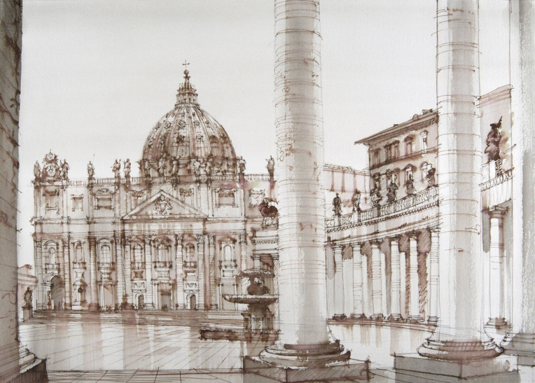 Точку в сложнейших перипетиях в XVII веке поставил скульптор и архитектор Джан Лоренцо Бернини. Он возвел перед храмом высокую колоннаду, образующую площадь. Она стала чем-то вроде титра «Конец» в последних кадрах фильма.