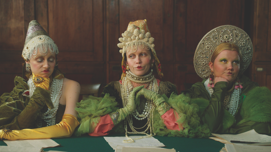 Фильм снимался в Петербурге, поэтому я сотрудничала с теми, кого считала самыми крутыми в своем деле. Помимо перечисленных тобой имен, в фильме появились еще ювелирный бренд G'glaze_grillz, который сделал для нас уникальные грилзы, марка Xassa и дизайнер Алиса Грицаева, в чьих шубах щеголяли главные героини, ну и, конечно, Юханн Никадимус со своими знаменитыми кокошниками (правда, он из Москвы). С Володей Варнавой было одно удовольствие работать: я хотела, чтобы он придумал движение, передающее ощущение «солдатского техно», и у него это отлично получилось. А сами съемки проводились в уникальных петербургских локациях, поиски которых дались нам нелегко, потому что перед нами стояла задача провести зрителя по самым ярким, с точки зрения эстетики периодам нашей культуры.