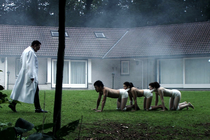 Если верить финальным титрам этой перверсивной симфонии ужаса и тошноты, монтаж «Человеческой многоножки» осуществил домашний любимец режиссера — пес по кличке Найджел. С большой долей вероятности можно утверждать, что и незамысловатый сценарий принадлежит его же бессовестным лапам. Поэтому случайным зрителям «Многоножки» будет полезнее сосредоточиться на сольном шоу карикатурного харизматика Дитера Лазера, знакомого поклонникам европейского кино по заметным ролям в картинах Фолькера Шлёндорфа и Иштвана Сабо. Отрицательное обаяние его выдающихся скул, когда-то позволившее этому актеру перевоплотиться в Базарова для немецкой телепостановки «Отцов и детей», спасло и ленту Тома Сикса.