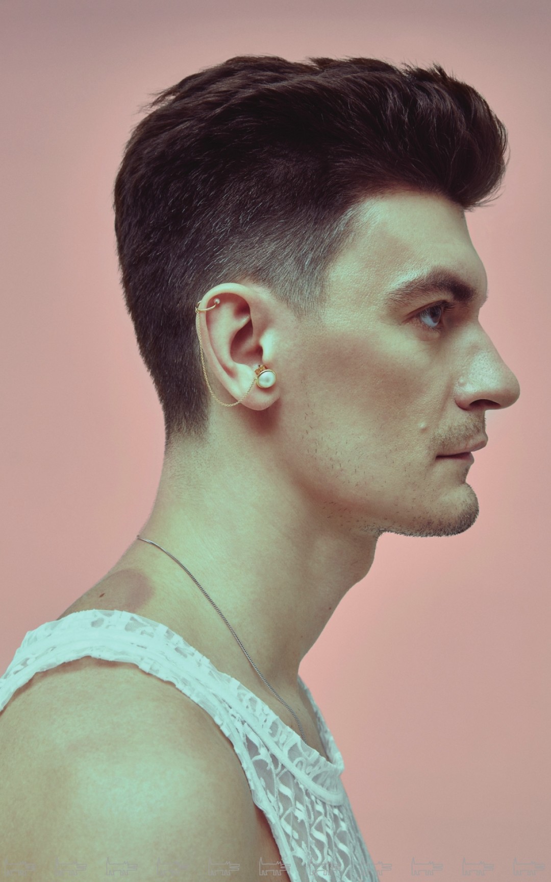 Майка Dior Homme (Dior), брюки Givenchy, шлепанцы Dries Van Noten (все — ДЛТ), серьга-кафф TOUS (TOUS)