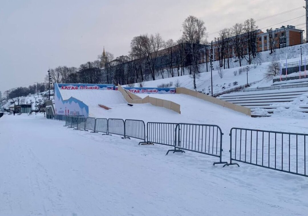 На набережной Камы у амфитеатра открылась мини-горнолыжка — склоны для катания на сноубордах и горных лыжах. Их строительство началось в конце декабря.