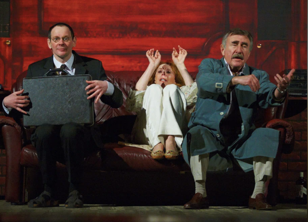 Актеры театра и кино Леонид Каневский, Клара Новикова и Даниил Спиваковский на сцене ДК им. Солдатова. Спектакль «Поздняя любовь», основанный на пьесе «В тени виноградника» Валерия Мухарьямова, рассказывает историю о Гарри Бендинере, одиноком человеке, который встречает удивительную женщину, изменяющую его жизнь.