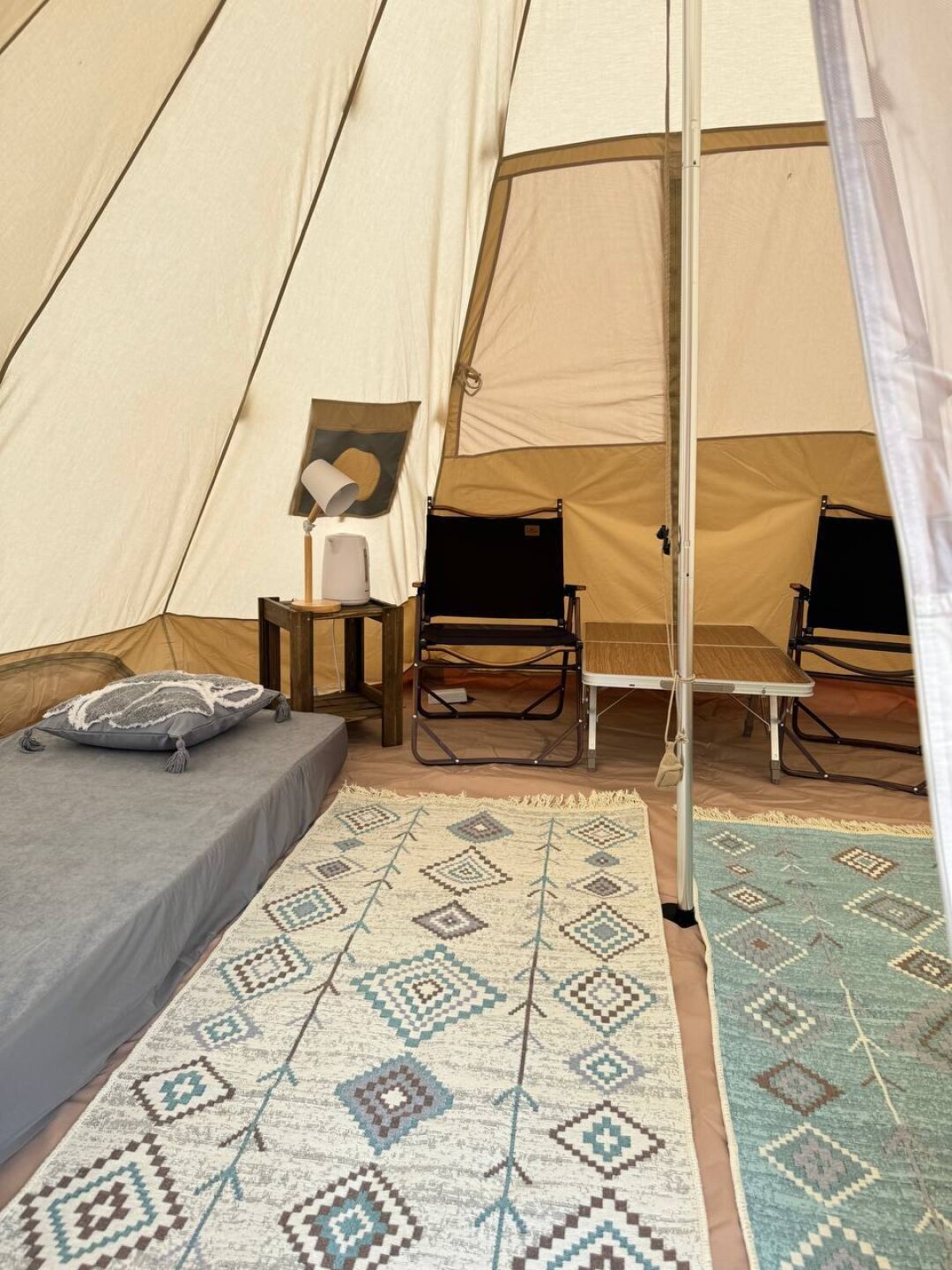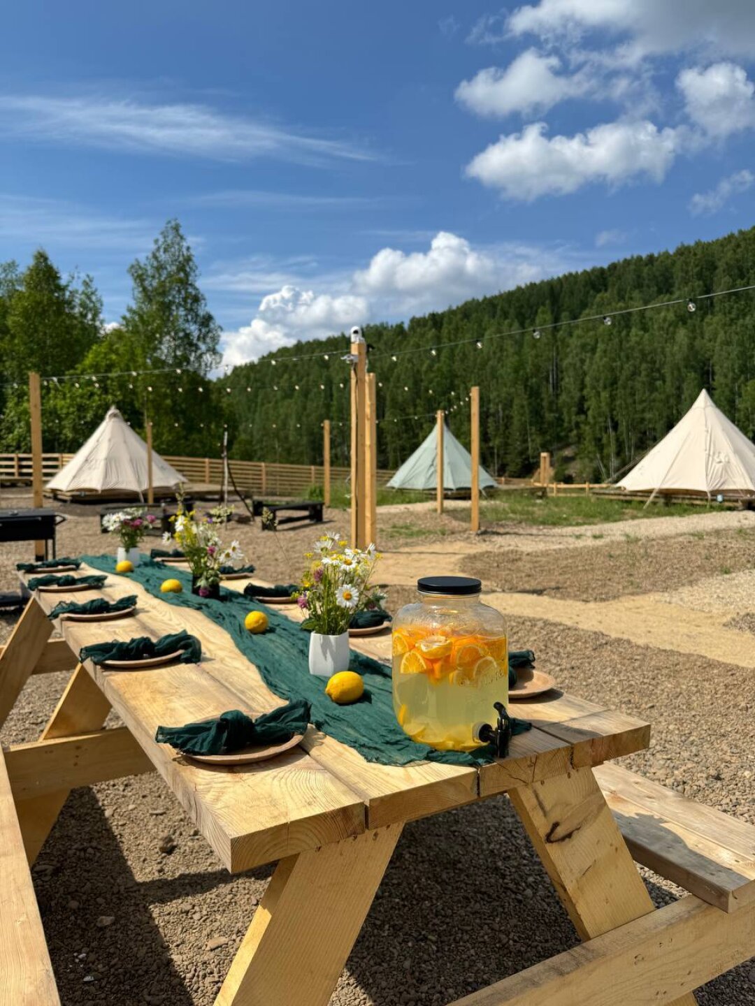 Для вашего удобства на огороженной территории кемпинга расположено 10 палаток с террасами на деревянных настилах. Это значит, что никакие погодные условия не смогут лишить вас домашнего тепла и уюта во время пребывания на территории кемпинга. Современные туалеты, умывальники с теплой водой, спальные мешки с вкладышами и розетки — кажется, организаторы предусмотрели все.