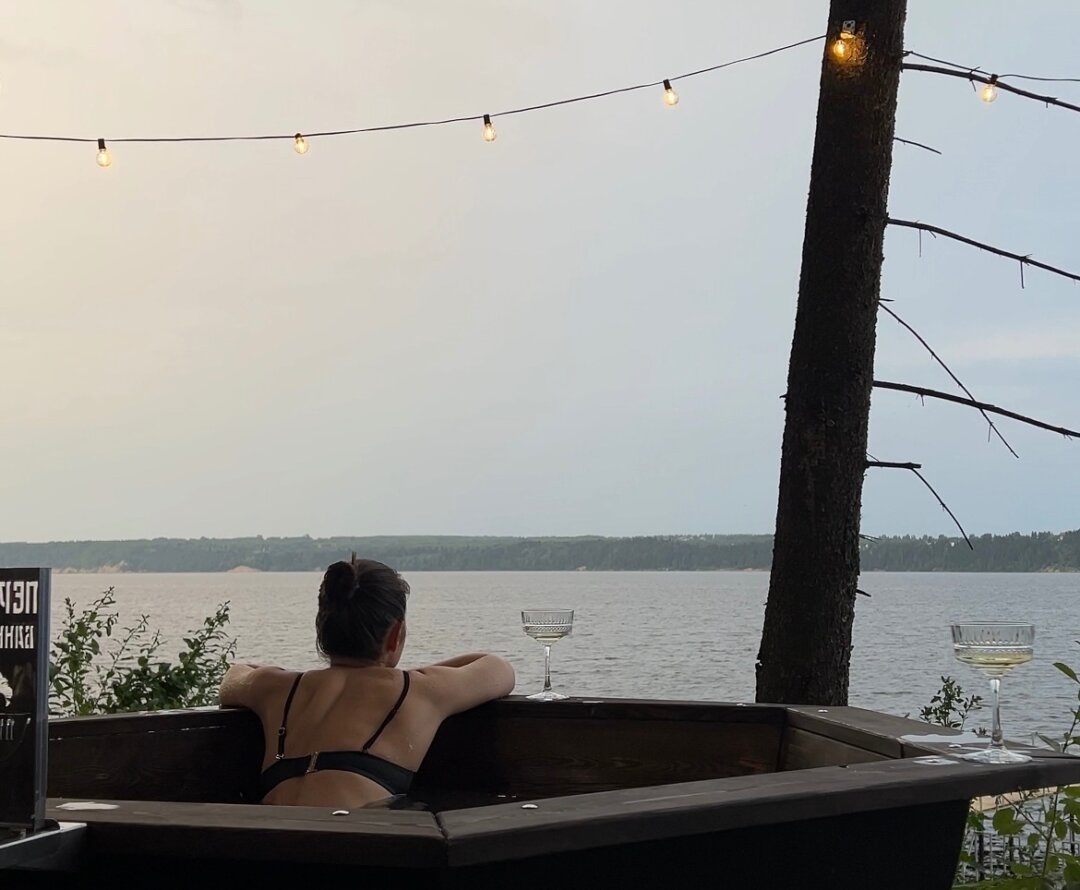 Гости в любой момент могут прочувствовать гедонистическое удовольствие — в домики доставляют пиццу и роллы. Полное единение с природой ощущается на утренних неспешных прогулках вдоль берега реки и вечерних посиделках у костра. Для истинного осеннего вайба можно пожарить хлеб на огне и выпить ароматный чай под любимый фильм, включенный на проекторе. Роскошные утренние и вечерние виды на мыс Стрелка так и манят отключиться от цифрового шума и насладиться настоящим моментом.