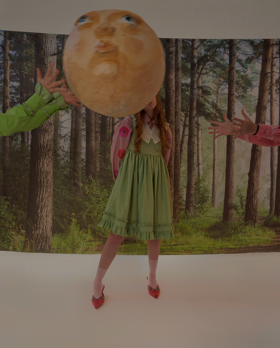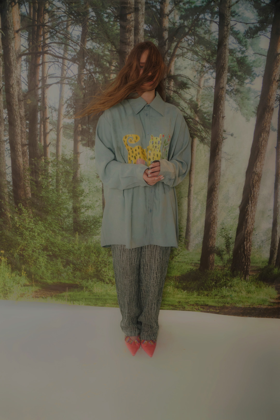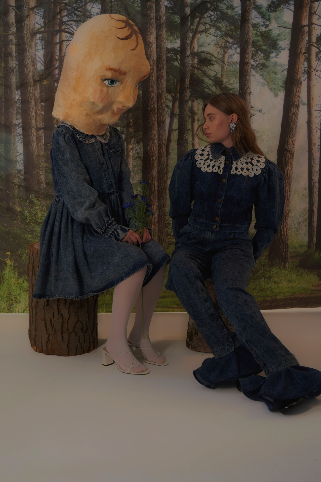 «Коллекция однозначно отозвалась во мне, и почему-то я снова почувствовала себя ребенком. Возможно, к этому подтолкнули детали: принты с игрушками, кружевные воротнички и атрибутика съёмки. Какой-то 2007 год по ощущениям, лето, бабушкин дачный домик, дом-палатка, старый светоотражающий коврик для пляжа, купальник с мелкими цветами, хлопковая розовая косынка. С теплотой и любовью вспоминаю это время и эти вещи, и такое ощущение, что прикоснулась к ним на съемке и почувствовала точно такую же ласковость и теплоту».