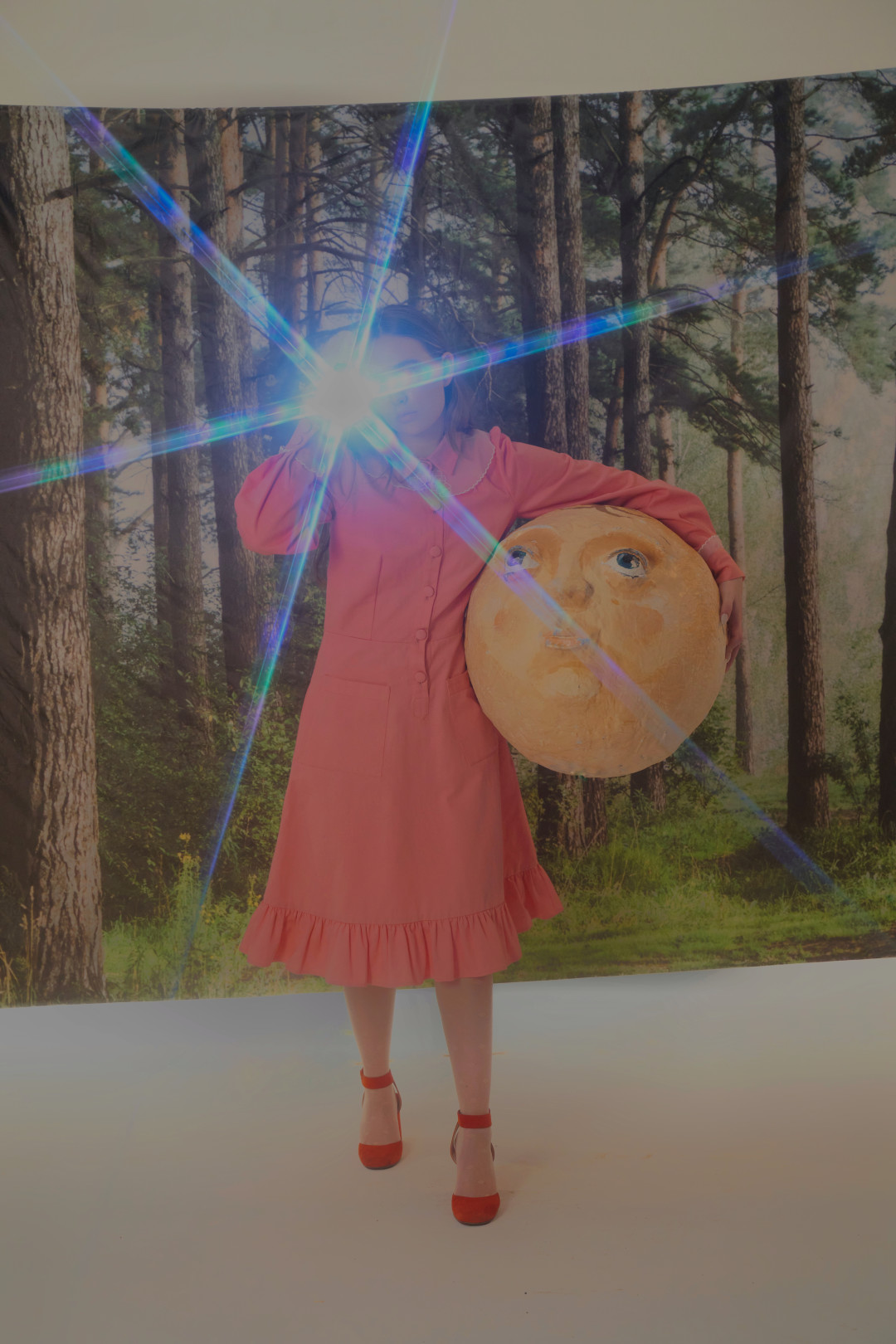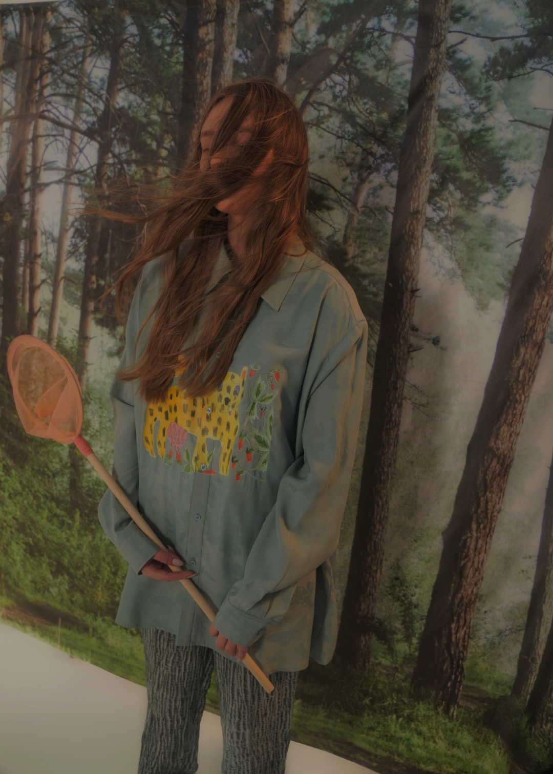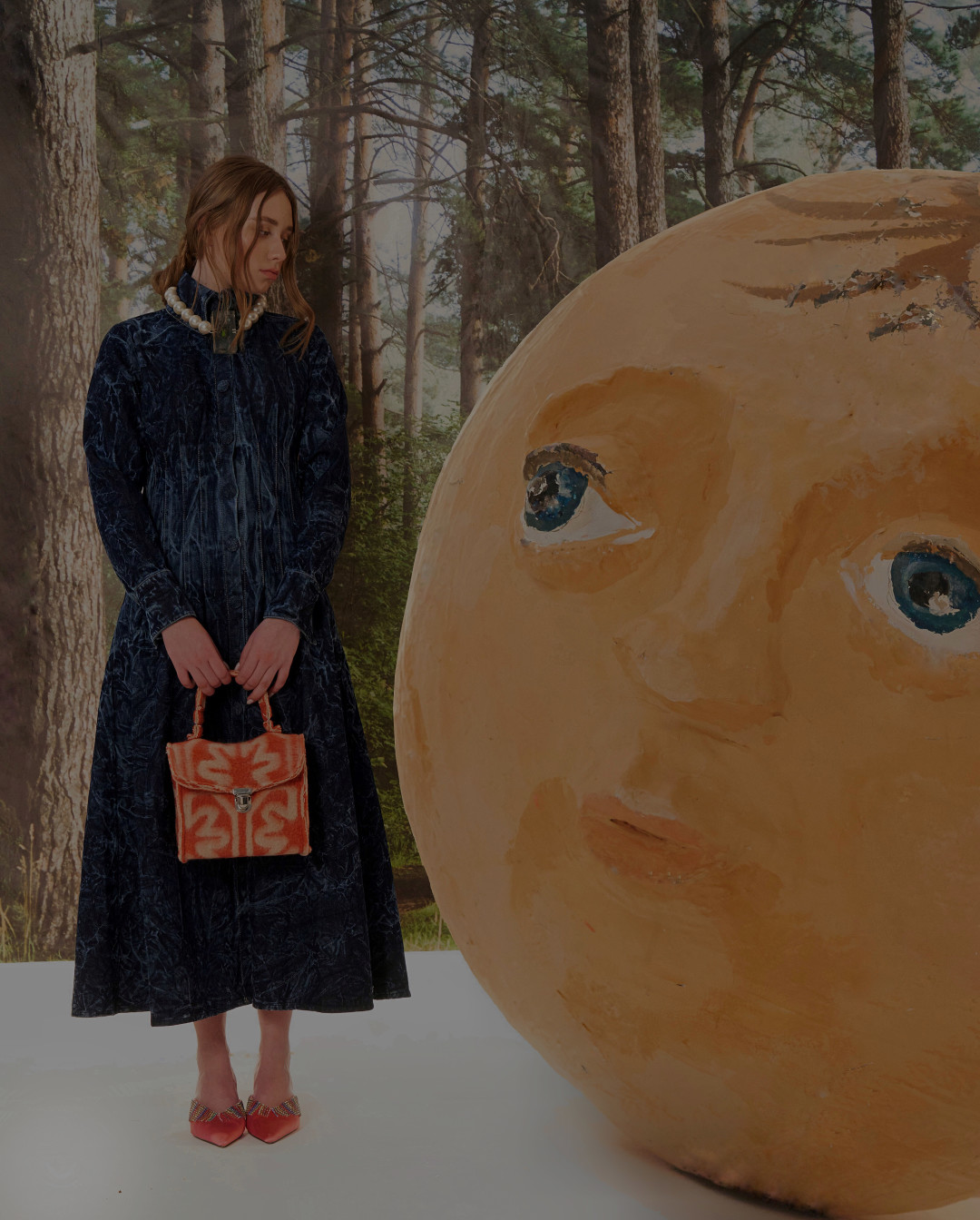 «Коллекция однозначно отозвалась во мне, и почему-то я снова почувствовала себя ребенком. Возможно, к этому подтолкнули детали: принты с игрушками, кружевные воротнички и атрибутика съёмки. Какой-то 2007 год по ощущениям, лето, бабушкин дачный домик, дом-палатка, старый светоотражающий коврик для пляжа, купальник с мелкими цветами, хлопковая розовая косынка. С теплотой и любовью вспоминаю это время и эти вещи, и такое ощущение, что прикоснулась к ним на съемке и почувствовала точно такую же ласковость и теплоту».