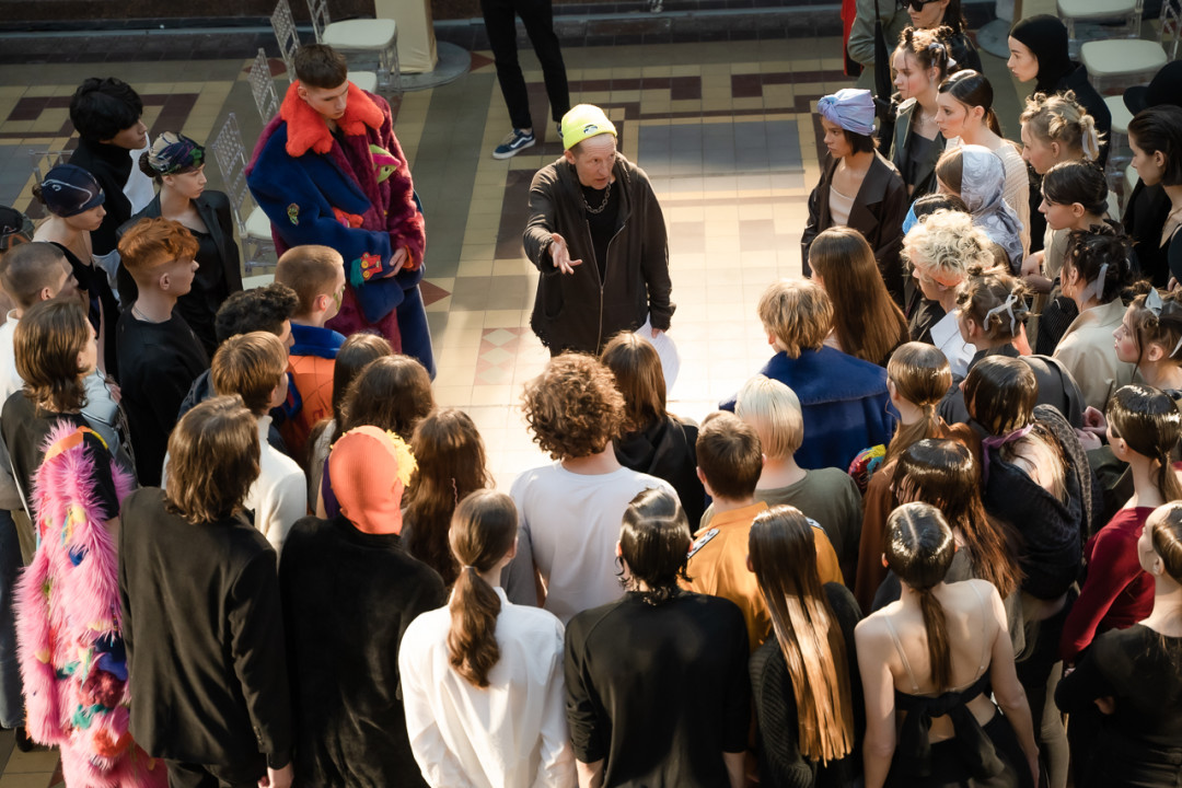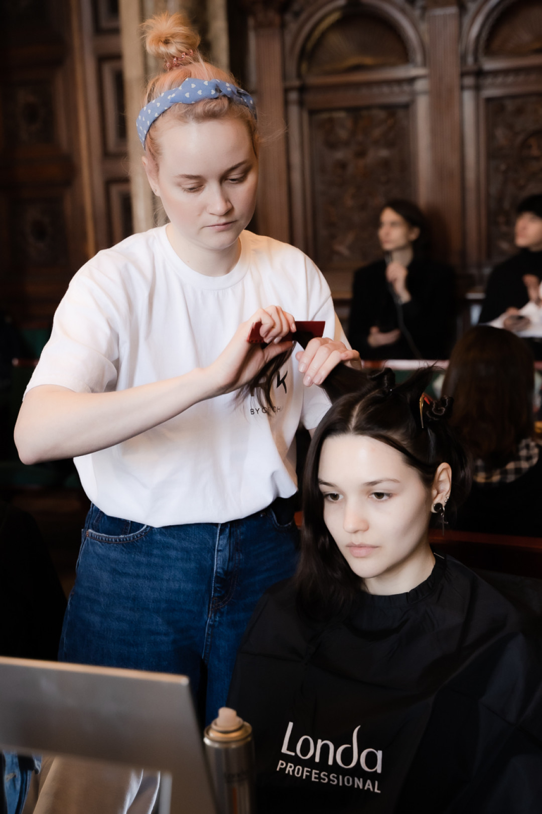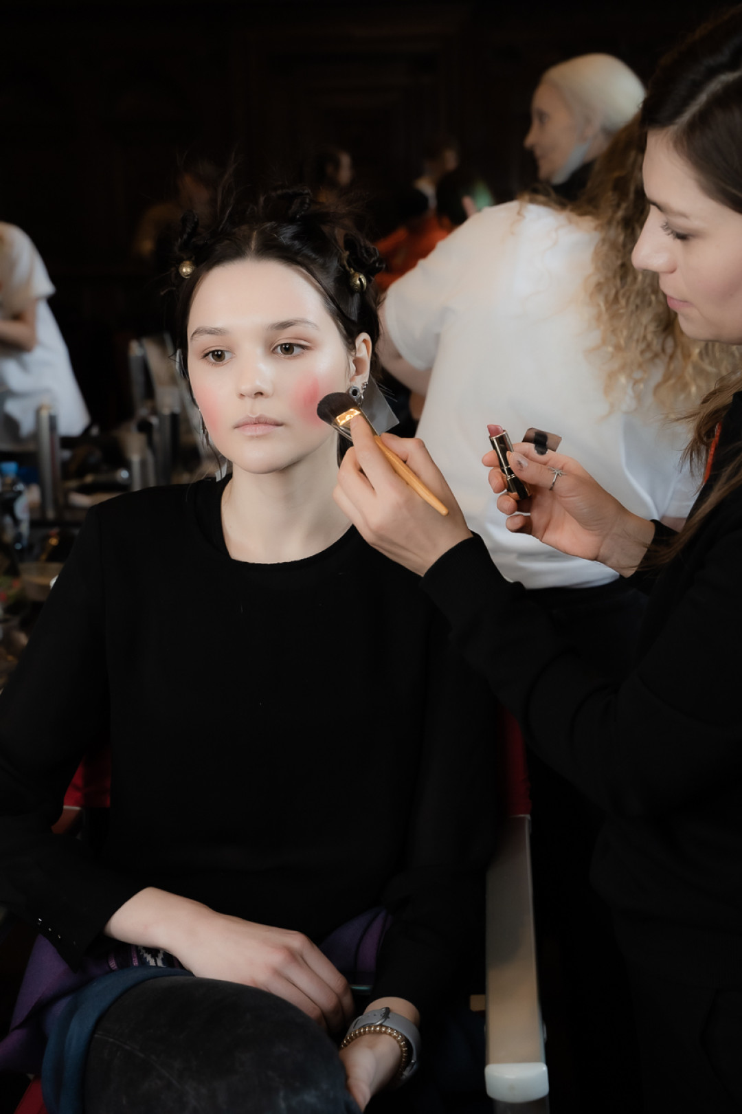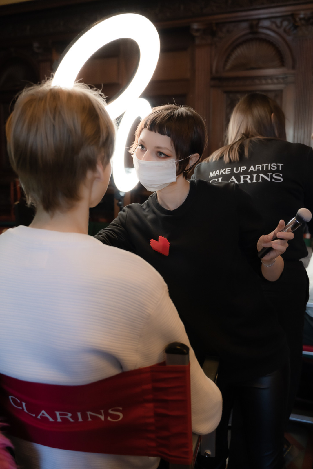 Над показом, ставшим важным и большим событием для наших победителей — молодых дизайнеров, потрудилось немало крутых профессионалов. Среди них — режиссер-постановщик Сергей Луковский, стилисты бренда профессионального ухода за волосами Londa Professional и студии PARK BY OSIPCHUK, визажисты легендарного косметического бренда Clarins и наши партнеры — сеть премиальных магазинов парфюмерии и косметики РИВ ГОШ, которые также познакомили гостей мероприятия с ароматом Cheeky Smile от итальянского парфюмерного дома Jusbox (аромат эксклюзивно представлен в сети РИВ ГОШ и Rivoli Perfumery). Все визажисты и стилисты, а также десятки моделей, собрались в зале академии Штиглица, который на день превратился в гримерку и костюмерную. С раннего утра шла масштабная и скрупулезная подготовка образов, некоторые из которых потребовали три-четыре часа работы!