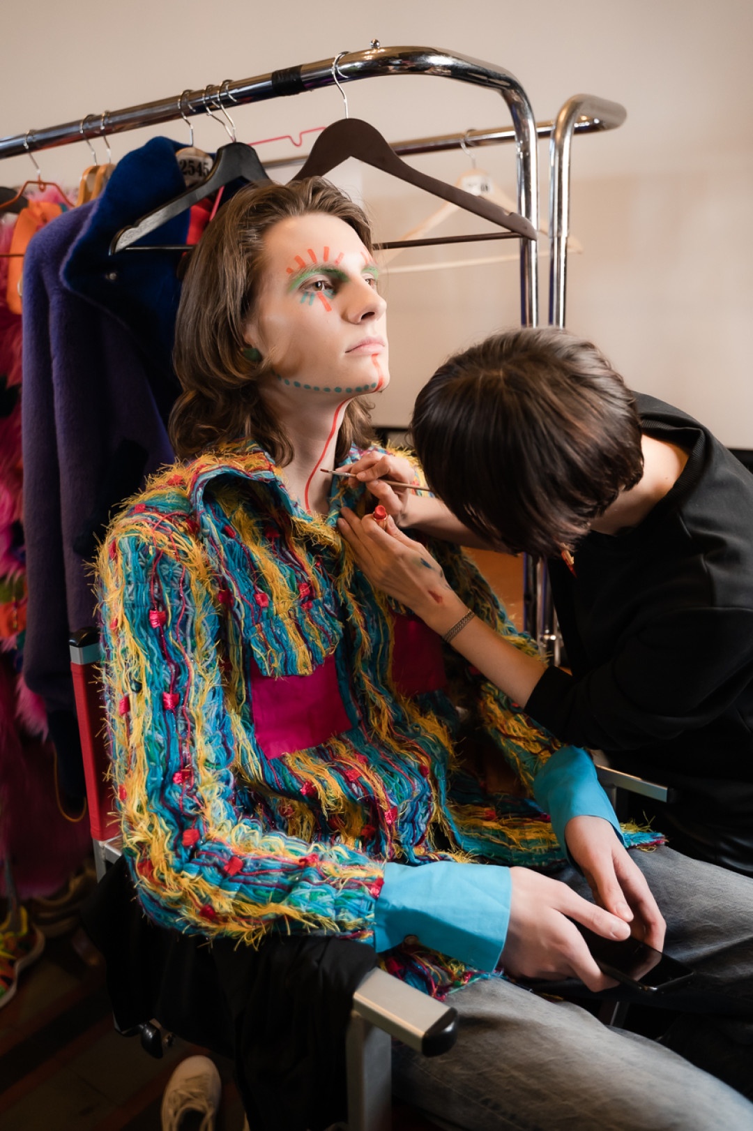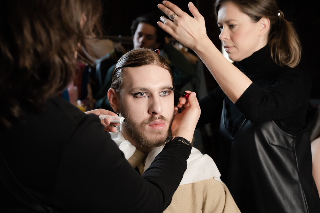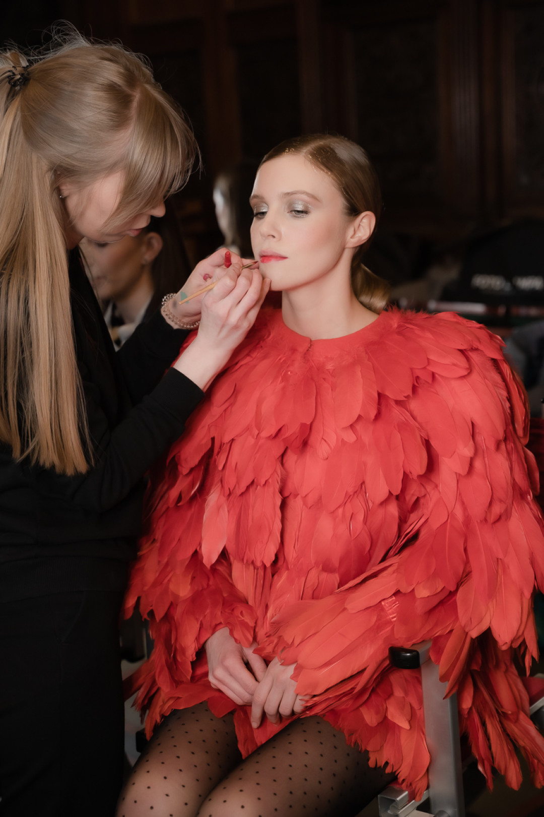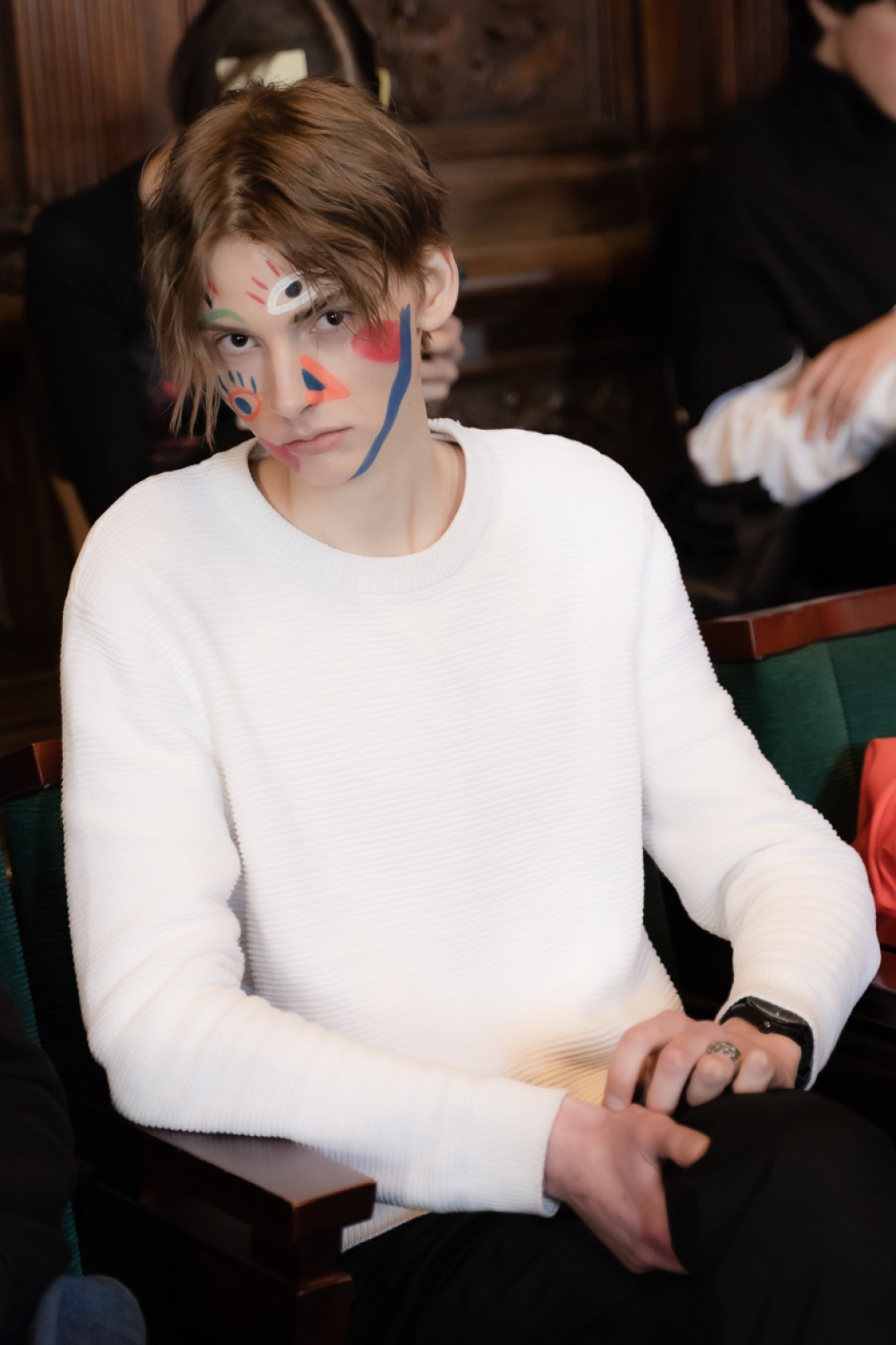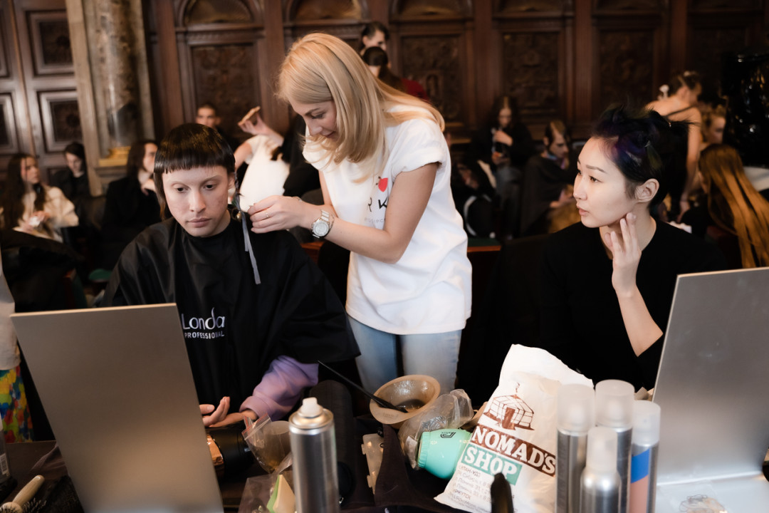 Над показом, ставшим важным и большим событием для наших победителей — молодых дизайнеров, потрудилось немало крутых профессионалов. Среди них — режиссер-постановщик Сергей Луковский, стилисты бренда профессионального ухода за волосами Londa Professional и студии PARK BY OSIPCHUK, визажисты легендарного косметического бренда Clarins и наши партнеры — сеть премиальных магазинов парфюмерии и косметики РИВ ГОШ, которые также познакомили гостей мероприятия с ароматом Cheeky Smile от итальянского парфюмерного дома Jusbox (аромат эксклюзивно представлен в сети РИВ ГОШ и Rivoli Perfumery). Все визажисты и стилисты, а также десятки моделей, собрались в зале академии Штиглица, который на день превратился в гримерку и костюмерную. С раннего утра шла масштабная и скрупулезная подготовка образов, некоторые из которых потребовали три-четыре часа работы!