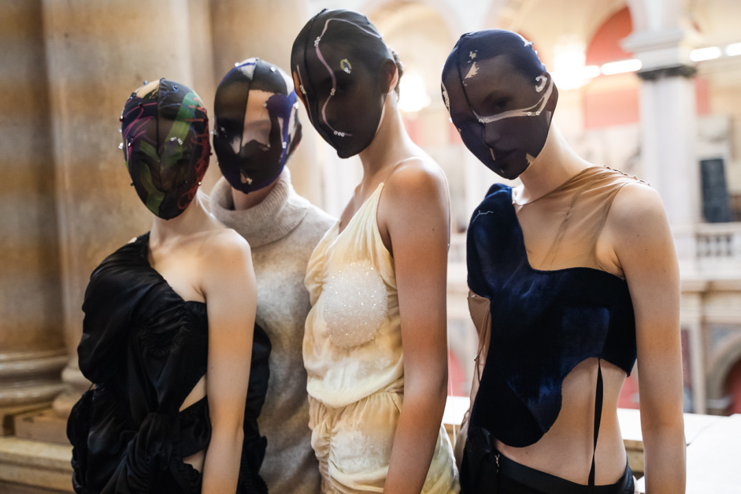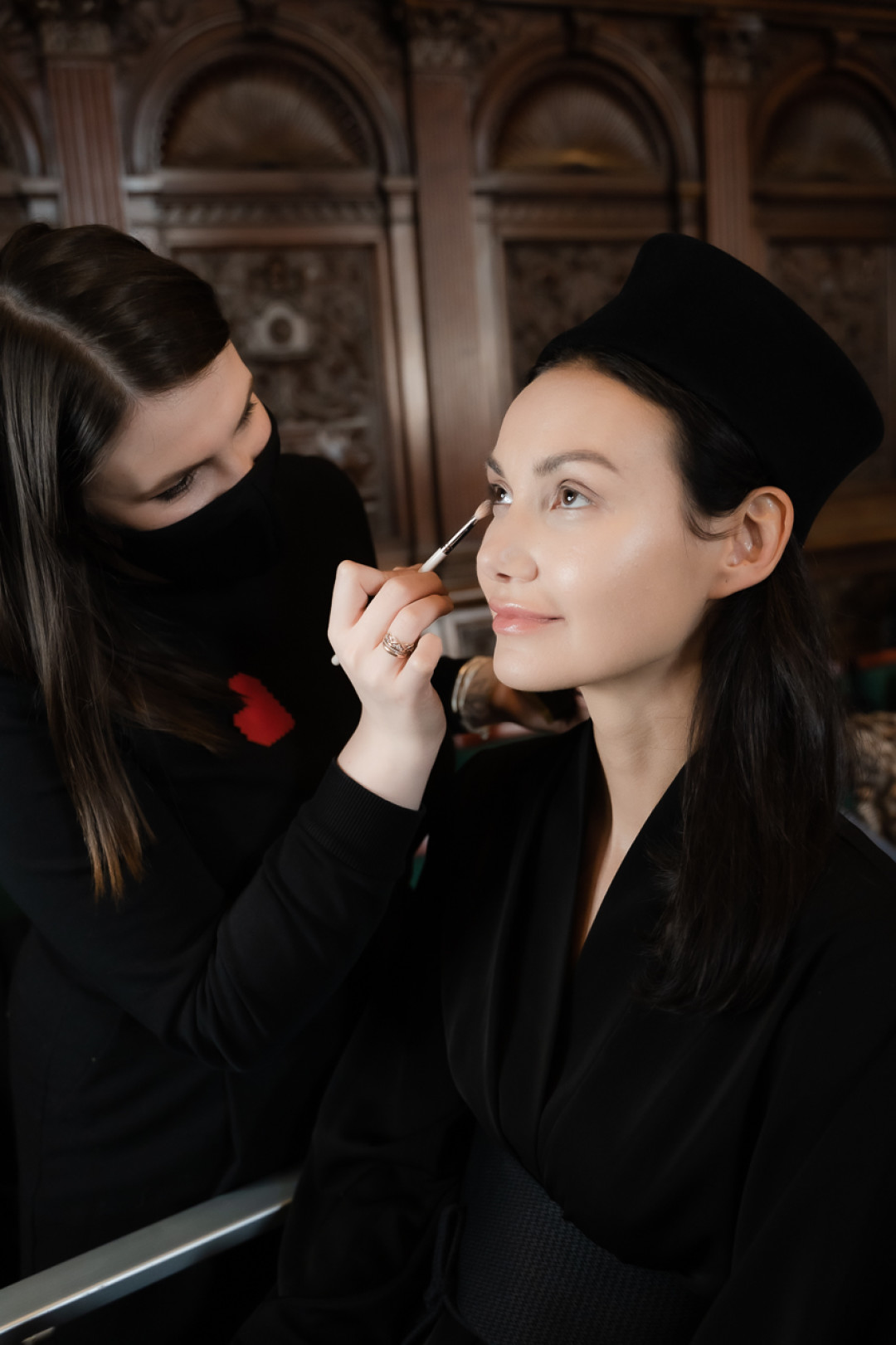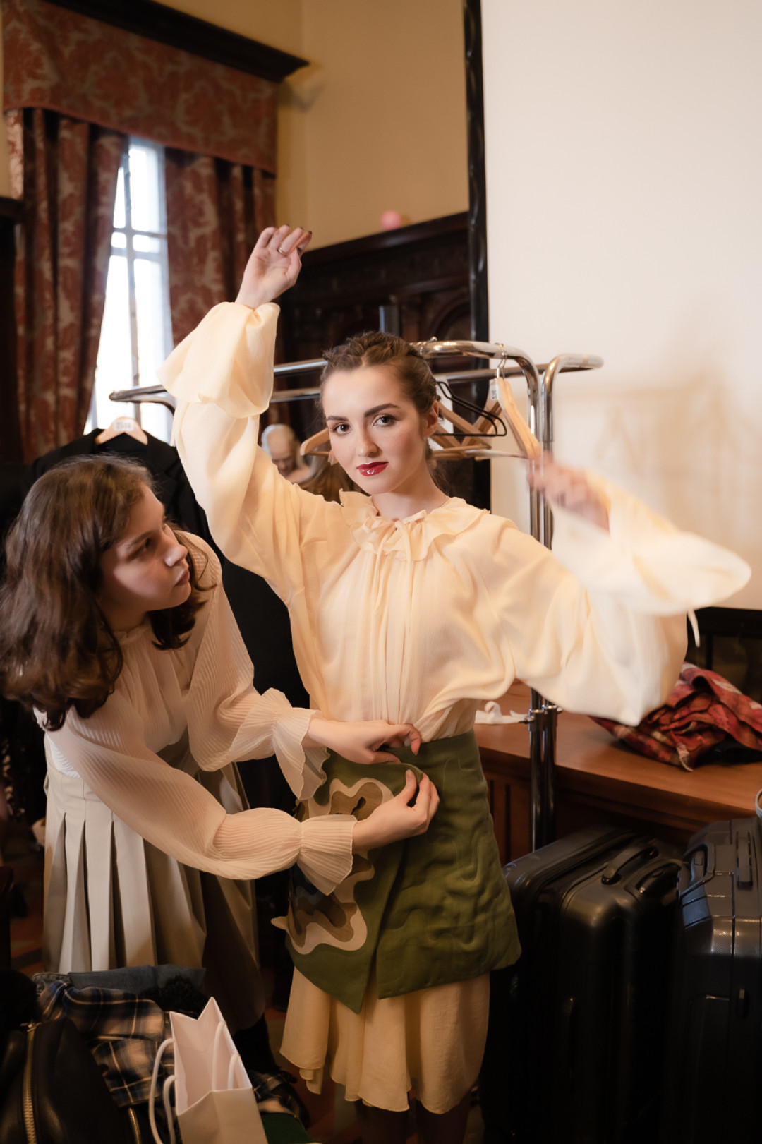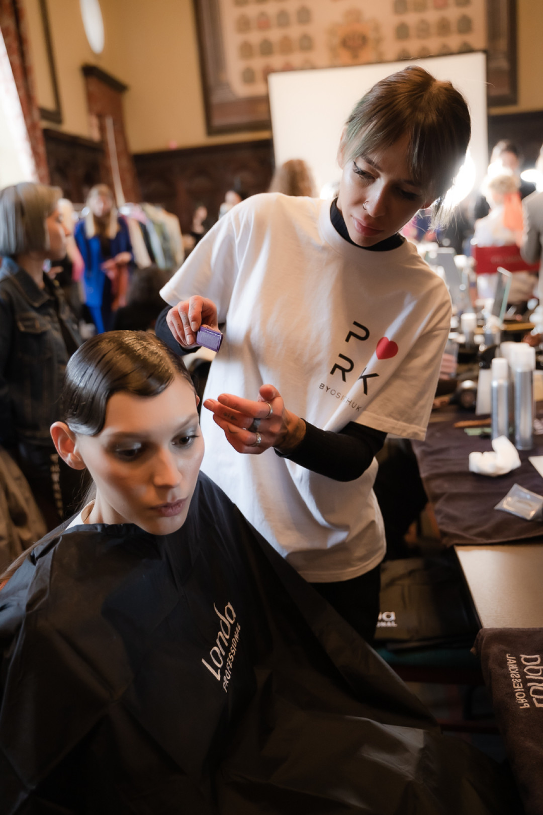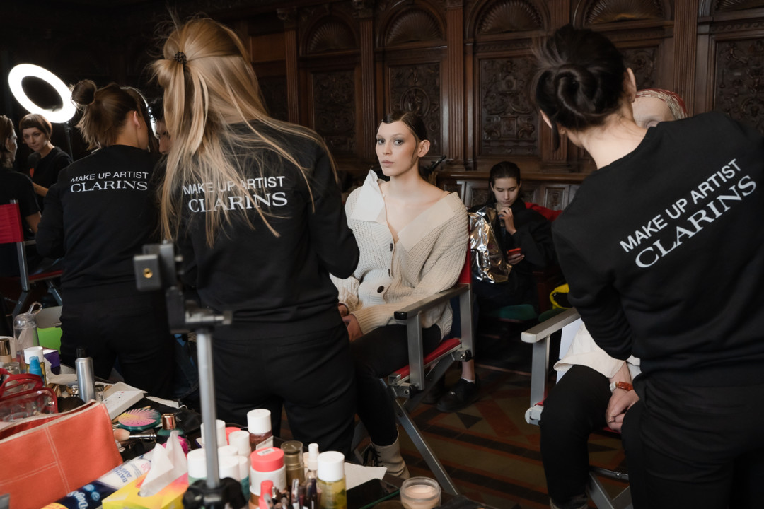 Над показом, ставшим важным и большим событием для наших победителей — молодых дизайнеров, потрудилось немало крутых профессионалов. Среди них — режиссер-постановщик Сергей Луковский, стилисты бренда профессионального ухода за волосами Londa Professional и студии PARK BY OSIPCHUK, визажисты легендарного косметического бренда Clarins и наши партнеры — сеть премиальных магазинов парфюмерии и косметики РИВ ГОШ, которые также познакомили гостей мероприятия с ароматом Cheeky Smile от итальянского парфюмерного дома Jusbox (аромат эксклюзивно представлен в сети РИВ ГОШ и Rivoli Perfumery). Все визажисты и стилисты, а также десятки моделей, собрались в зале академии Штиглица, который на день превратился в гримерку и костюмерную. С раннего утра шла масштабная и скрупулезная подготовка образов, некоторые из которых потребовали три-четыре часа работы!