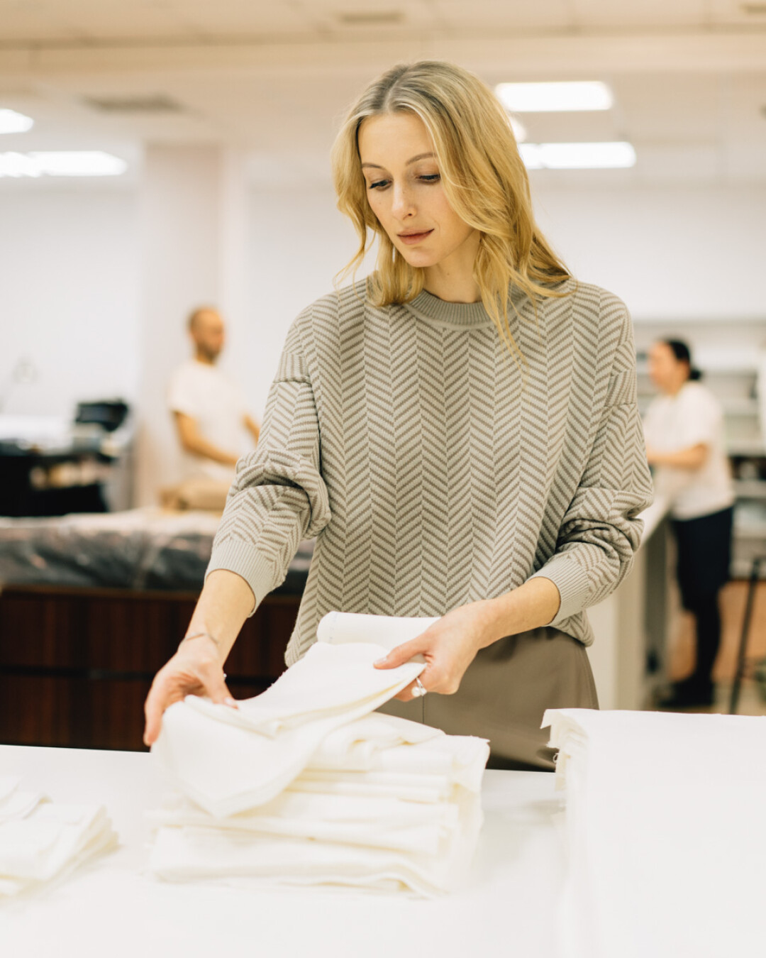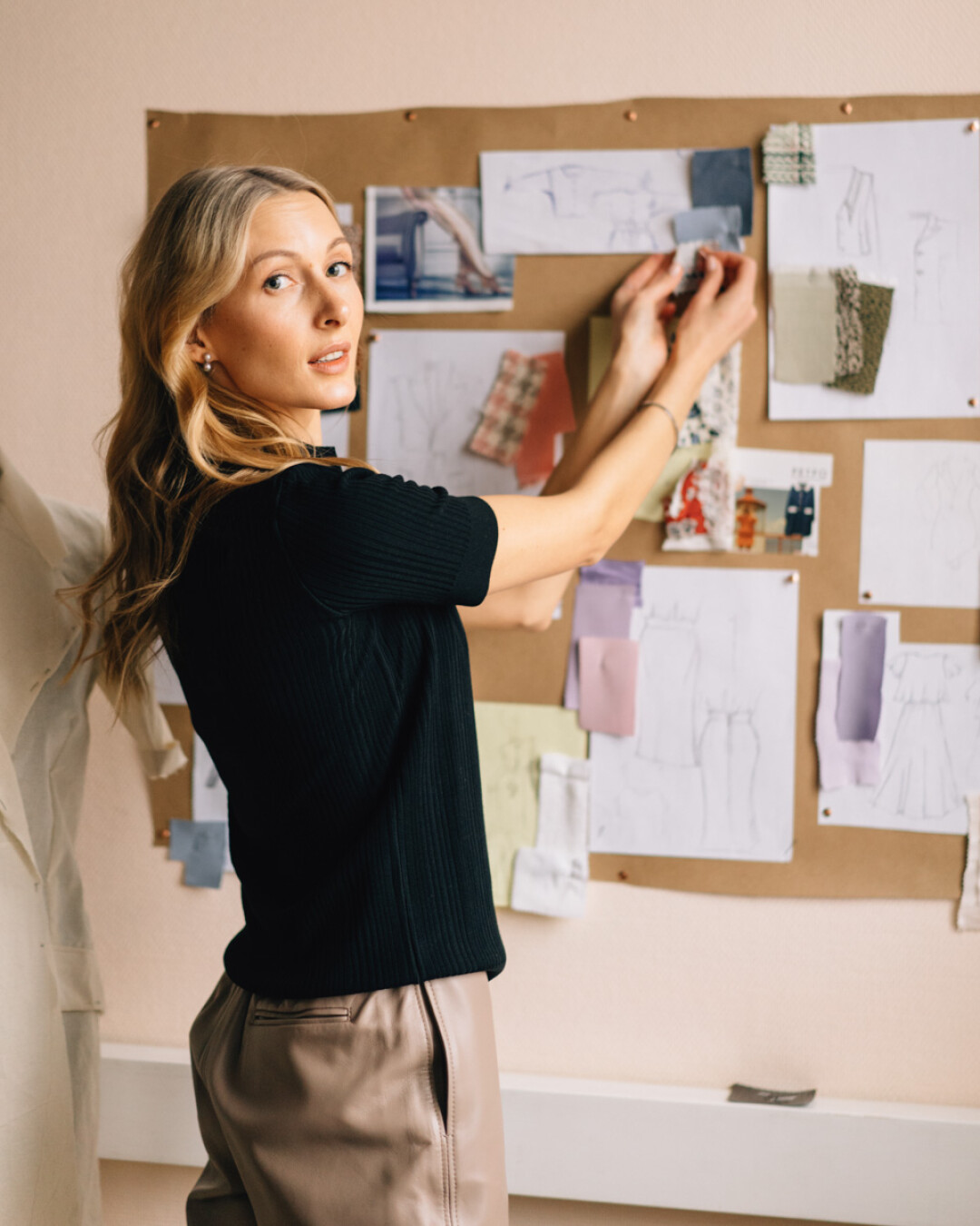 Вначале было много идей, но меньше целостности. Я как дизайнер могу сказать, что сейчас коллекция сбалансирована, выработана четкая концепция капсульного гардероба, все вещи идеально комбинируются. С каждой вещью можно составить 20 луков минимум. Мы видим нашу клиентку как девушку с активной социальной жизнью, работой, семьей: ей, например, бывает нужно быстро сменить офисную водолазку на шелковую блузу, чтобы отправится в театр, и мы учитываем ее потребности по максимуму.
