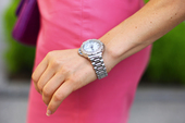 На Дарье: платок Louis Vuitton, итальянские босоножки noname, кожаная юбка Studio Nebo, топ Brigitte Bardot, сумка Dior и часы Tag Heuer.