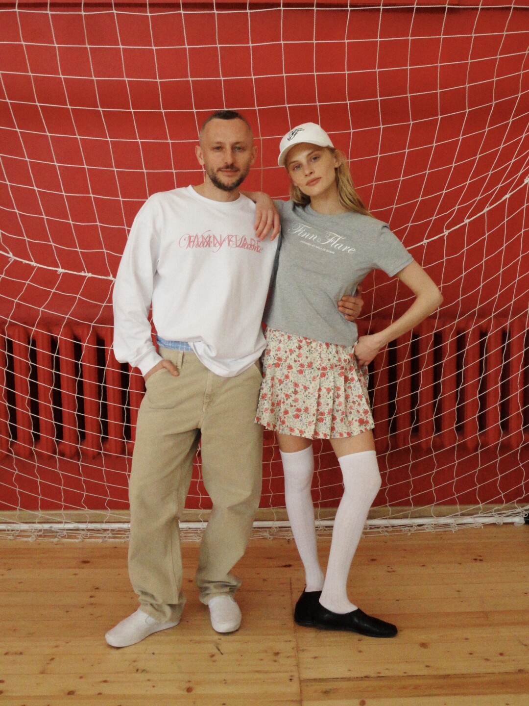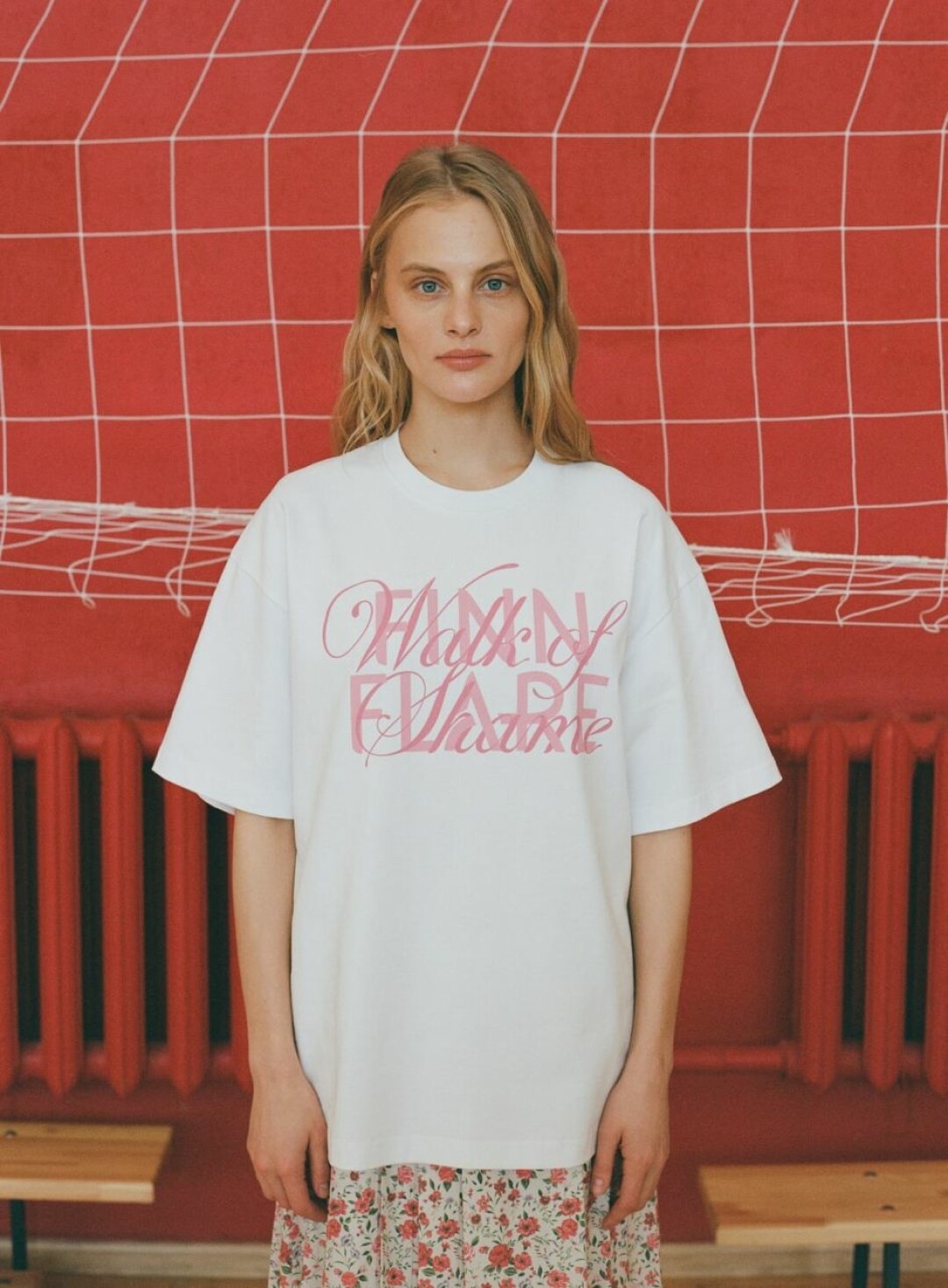 Знаешь, я ведь ненавижу эти майки с логотипами. Но об этом никто не должен знать! Я люблю графику, если в ней присутствует месседж. Надписи Private dreams или Petit pain — в этом есть смыслы. Помнишь, у ЦУМа был кринж-лозунг «Миланские цены»? Мы тогда у них на последнем этаже как раз показ Walk of shame делали, и шоу открывала майка с надписью: «Миланские цены». Троллинг удался, был солдаут. Такие ходы я люблю. Вот в футболках из коллаба мы пишем Finn Flare нашим шрифтом или заплетаем два логотипа друг в друга, там есть игра.