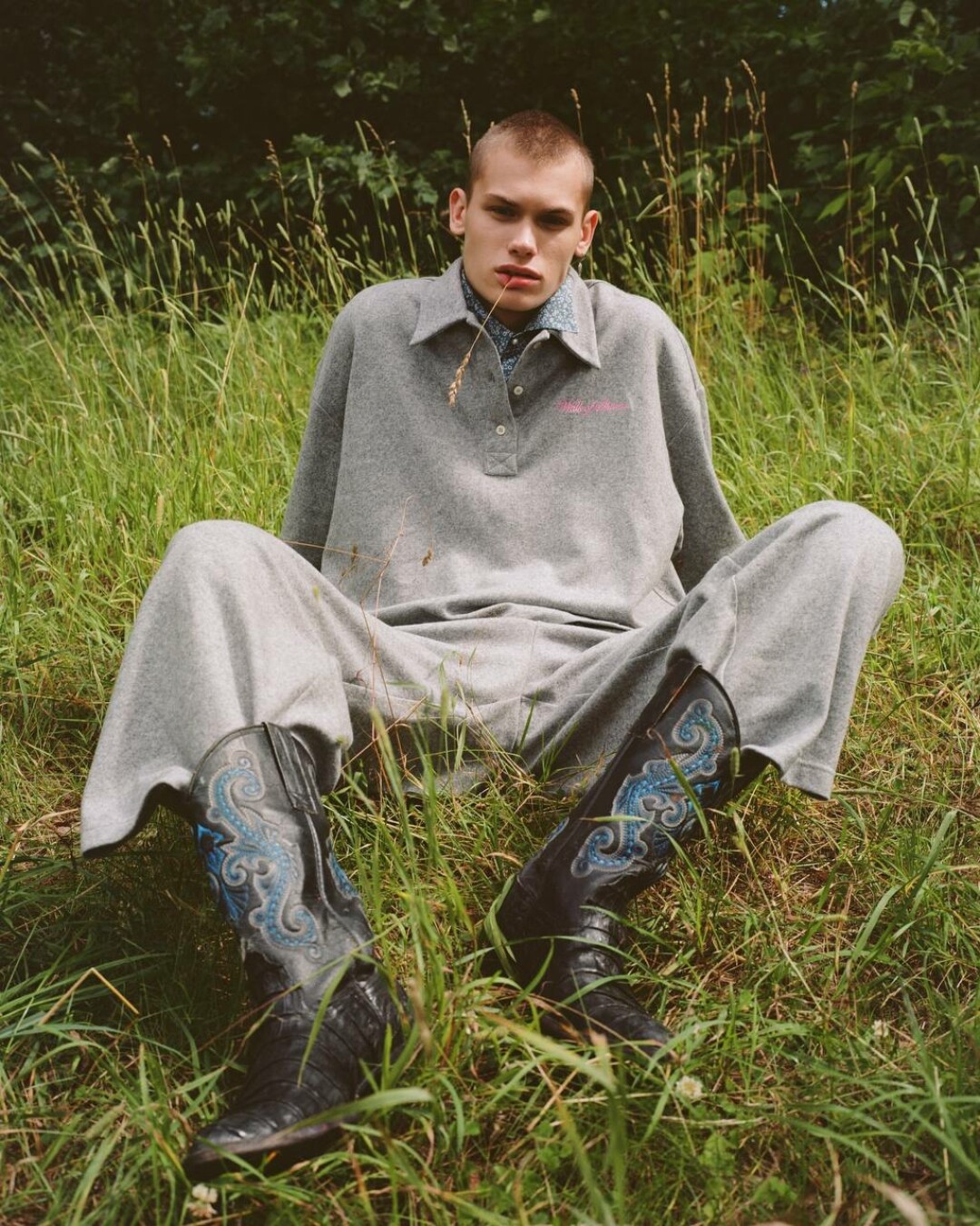 Так и есть. Марки-кописты, которые обесценивают моду, дизайн, ремесло, просто берут условную куртку Prada, переснимают лекала и строчат упрощенную версию. И они повсюду! Я не против заимствований, я сам могу найти что-то в винтажке или в архивах, но ведь самое важное здесь — переосмыслить и переработать. Безусловно, не всем делать моду, дизайн, кутюр, не всем быть Джонатаном Андерсоном. Видела последнюю Loewe, да? Посеребренные деревянные воротники пальто, которые выглядят как меховые, сумка-связка спаржи, расшитая бисером, имитирующая антикварную статуэтку фарфоровой фабрики Chelsea — это же можно с ума сойти! Понятно, что они потом тоже будут продавать свитерки и спортивные костюмы. Но есть же вот эта подиумная часть, которая показывает, что такое ремесло, какое оно сложное, какое оно информативное и концептуальное.