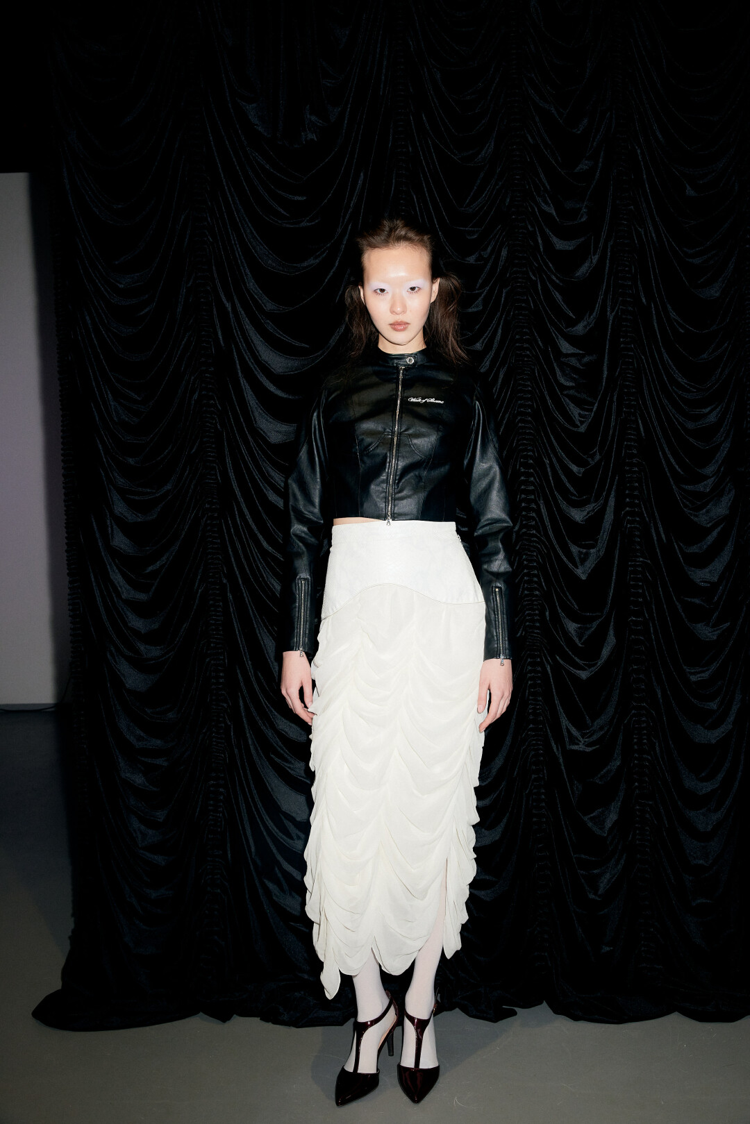 Для меня это органика, я всегда так делал. Когда-то Наташа Гольденберг сидела на моем показе рядом с Толей Титаевым, Децл мог быть на одном мероприятии с Сесилией Дин, а Шахри Амирханова — с Авдотьей Александровой (фаундер агентства Lumpen, режиссер — Прим. ред.), которую мой друг Сергей Пойдо нашел в Tumblr, а мы тут же пригласили видео снимать. Эти люди, возможно, нигде бы не встретились. Да, PollyHey — супернеоднозначный персонаж, она вызывает эмоции, а я обожаю, когда люди провоцируют сильную реакцию. А если будут травить, я буду защищать, у меня эта боль еще с фильма «Чучело». У меня еще клиентка — Валя Карнавал — тоже должна была приехать, но не получилось. Ее знает каждый 14-летний ребенок. Сначала она пришла как клиентка, а потом мы подружились, я ей недавно показал двор «Тото», очень модный московский двор. Как когда-то показал Шахри «Кризис жанра». Но главная пушка — это Kristina Si в корсете и спортивных брюках Walk of Shame. Она была со своим другом, супермузыкантом, который в грилзах золотых танцевал под DJ Козака. Вот так пойдет кто-то, сможет так? Вот если сможет, тогда и поговорим, почему платье по 250.