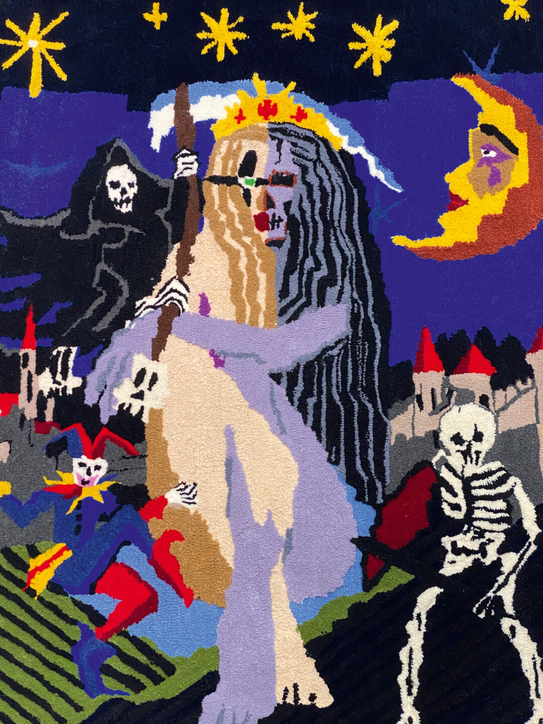 Вампира лучше оставим. Не вижу смысла ограничивать себя в видах искусства — все переплетено и вытекает одно из другого, а я просто как диджей свожу смыслы и жанры. Получается жесткий синтез: то делаю обложки рэперам, то Нуву айдентику разрабатываю. Из последнего — работали с Дашей Прибищук над клипом Хаски, должно хорошо получиться. А однажды я нарисовал картину, и мы с Глебом Костиным сплели по ней ковер.