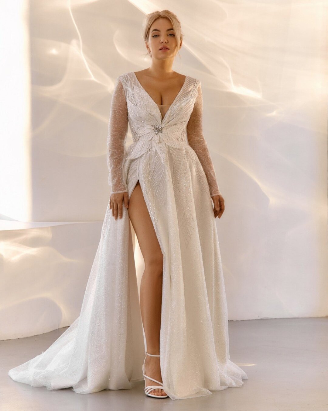 Лучше выбрать что-то легкое, развевающееся, особенно для загородных площадок. Обязательно учитывайте место проведения торжества. И не бойтесь консультироваться — опытный консультант поможет найти компромисс между мечтой и реальностью.