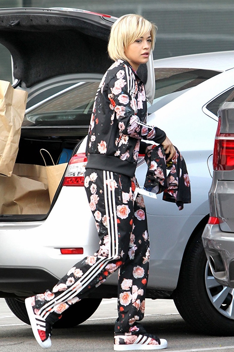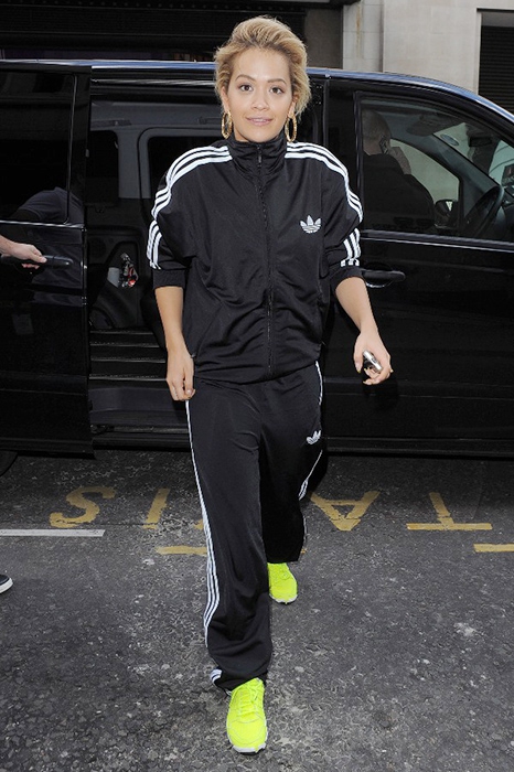 У Риты Оры можно поучиться, как без ущерба для своего имиджа и психики окружающих носить спортивные штаны, олимпийку и кроссовки целый день. Костюм кислотного цвета на Оре смотрится отлично даже с шлепками, а спортивное бра вкупе с обтягивающими трениками заслуживает внимания и уважения. Певица фанатела по adidas с 16 лет, а будучи тинейджером, она даже работала у них в магазине. Поэтому своей коллаборацией со спортивным брендом девушка очень гордится (хотя по слухам, британке удалось получить контракт с adidas Originals благодаря дружбе с любимцем марки Джереми Скоттом). Тем не менее, совместная линейка — успешный пример слияния моды и музыки: Ора одновременно работала над вещами и записывала альбом. Так, часть коллекции с цветочными принтами Rose Pack создавалась под песни о любви, а вещи из линейки Black Pack придумывались, когда певицу тянуло на рок.
