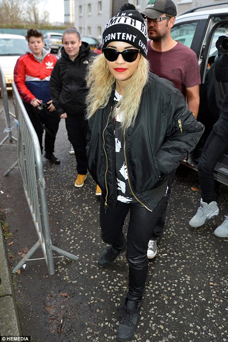 Еще год назад в репертуаре певицы были длинные ногти и розовые помады, сейчас привычный для Риты Оры макияж — черные стрелки, красная помада, лаконичная растрепанность и, согласно канонам новой уличной моды, ногти в разноцветном глиттере.