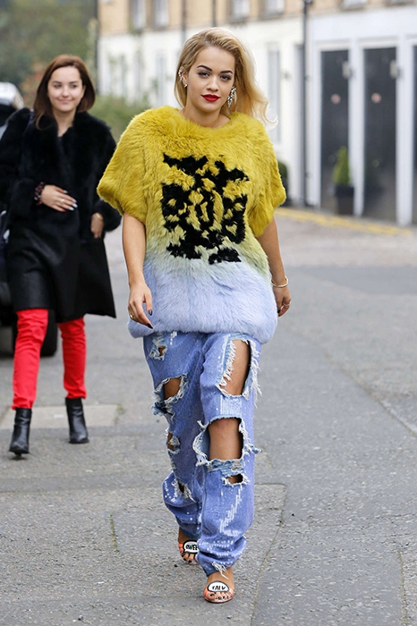 Риту Ору часто сранивают с Рианной: обе исполняют хиты, которые возглавляют музыкальные чарты, работают с одной продюсерской командой лейбла Джей Зи и как будто бы делят гардероб. В отличие от Рианны, у Оры целых два стилиста: Кайл Деволь, смешивающий стиль Гвен Стефани с уличным стилем лондонских it-girl, и Джейсон Ремберт, собирающий образы для красных дорожек. Может поэтому на некоторых позициях — например, в дениме — Ора явно обыгрывает Рианну.