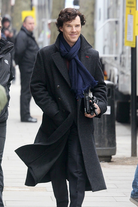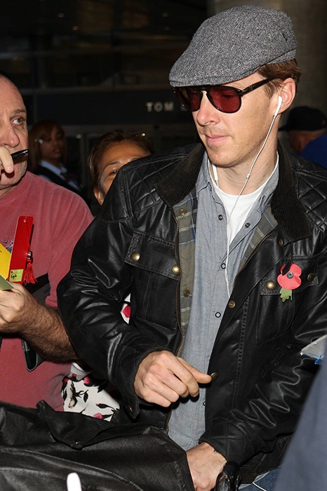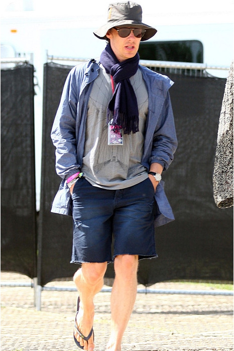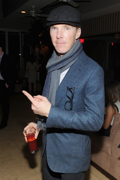 За Бенедиктом замечена страсть к кепкам кополлам (изначально головной убор сицилийских рабочих) и восьмиклинкам в клетку на британский лад. Еще один неизменный аксессуар (и герой десятка мемов с Камбербэтчем) — шарф. Его актер не снимает на улице, в помещении, зимой, и даже летом сочетает вязаный шарф шортами, футболкой и панамой.