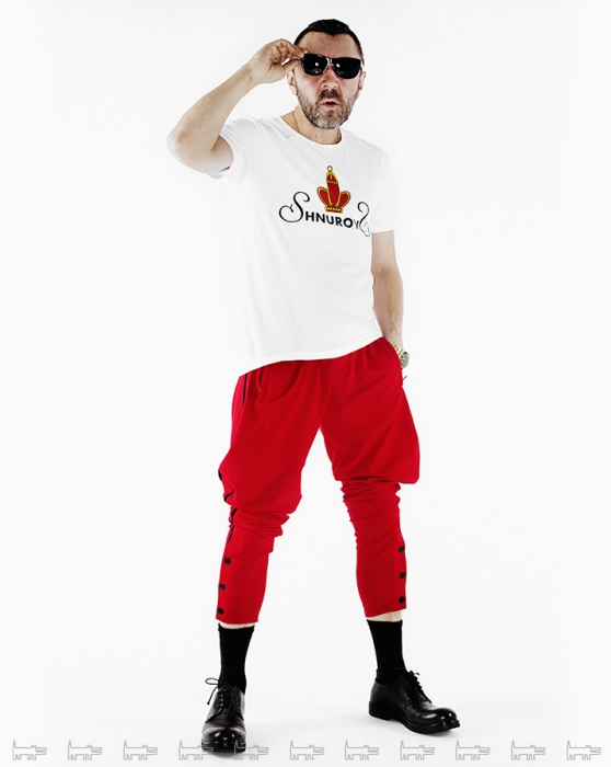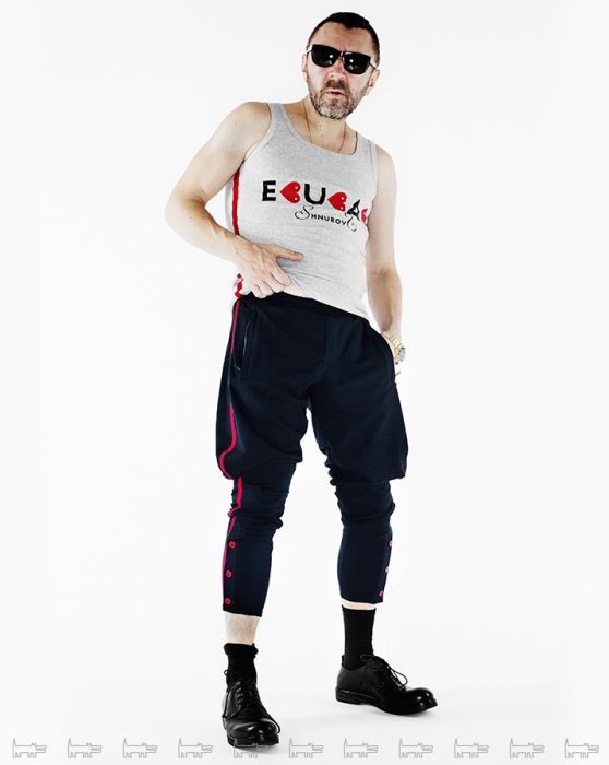 Сделав одежду, мы быстро поняли, что майка #б…нужносумом марки «Жанна Б.», и треники с хером ShnurovS — идеальная пара. Исключительно из этих соображений выставили перекрестные баннеры, рекламу в наших интернет-магазинах, продаем вещи друг друга. Мы же не типичные русские дизайнеры, нам делить нечего, коллабораций мы не боимся, дружить умеем. Недавно мы провели маркетинговое исследование: обычно фанаты группы «Ленинград» — это мужчины крупного телосложения, любящие оторваться как следует. Как правило, они покупают наши простые футболки с логотипом. Другая категория — люди на дорогих автомобилях, с дорогими сумками и телефонами, в дорогой дизайнерской одежде. Они покупают безумные вещи из нашей линии, например штаны с хером. Они говорят, что у них в жизни все есть, но такого выпендрежа и драйва нет. Они носят нашу одежду на даче или дома, в кругу друзей.