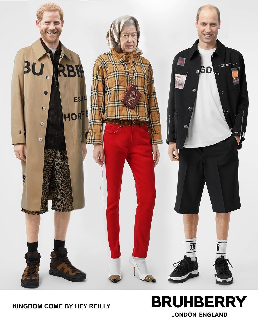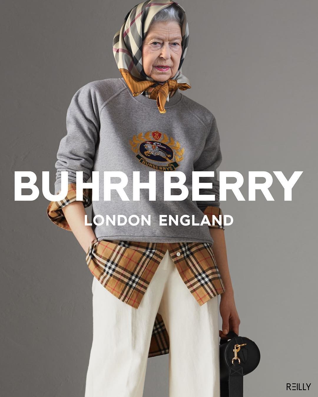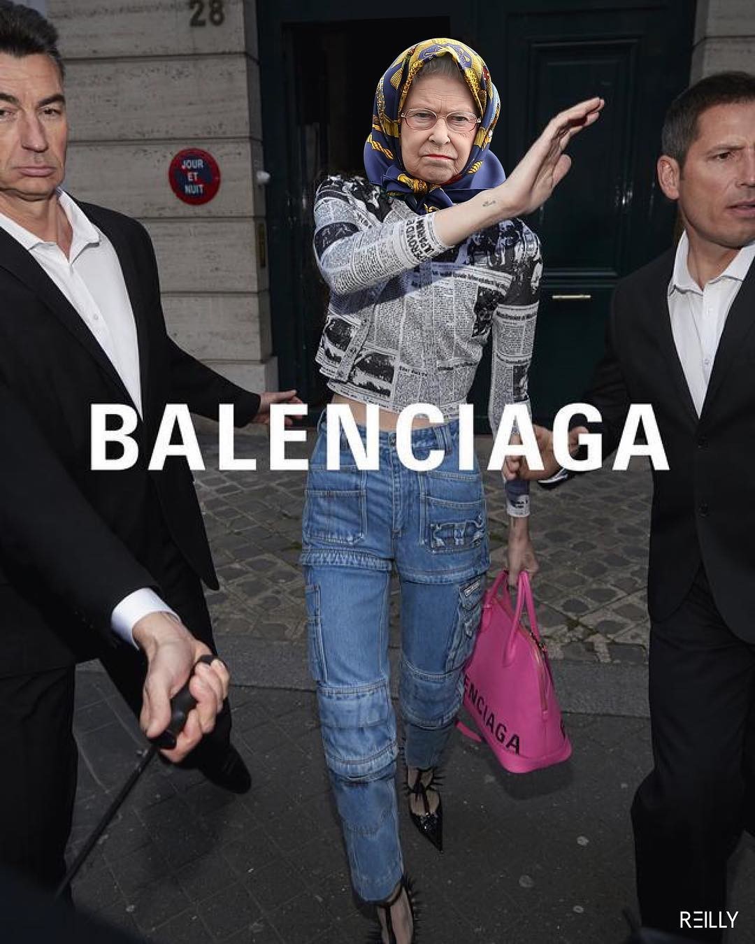 К неофициальному пулу сотрудников Букингемского дворца в последние годы подключились художники @hey_reilly, @freddiemade и @sainthoax. Они находят в стиле Елизаветы II аналогию с образами Рианны, Анны Винтур и героев лукбука Balenciaga и виртуально примеряют к ее шляпкам платье-яичницу, оранжевые ботфорты и футболку DHL. Вещи, которые противоречат королевскому этикету и точно никогда не войдут в монархический гардероб, все же отлично смотрятся на Елизавете. И самое главное — позволяют подданным увидеть ее по-другому: не исторической личностью, а простой бабулей, которая закупается в Harrods, Selfridges и на Farfetch.