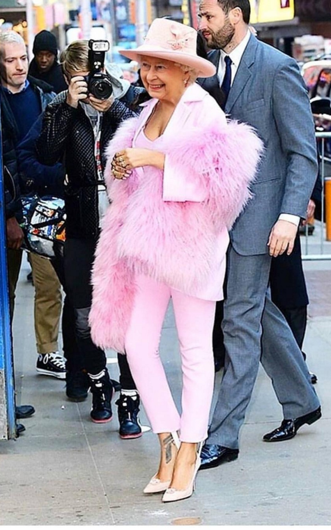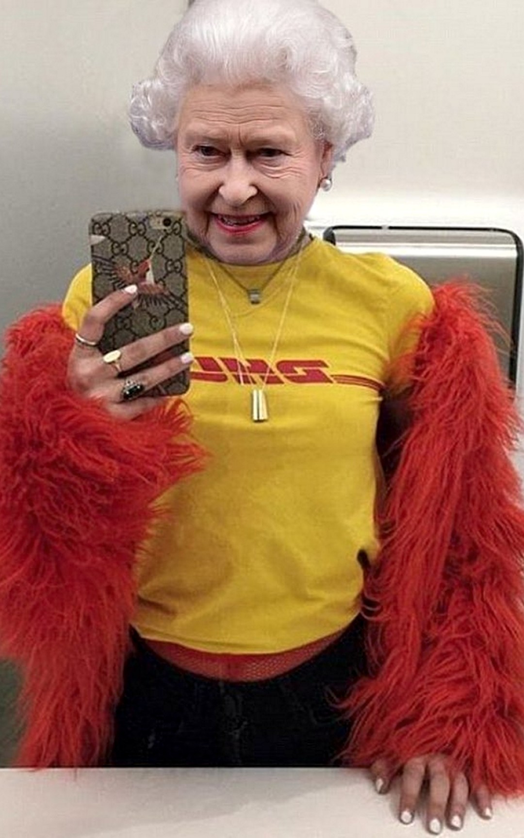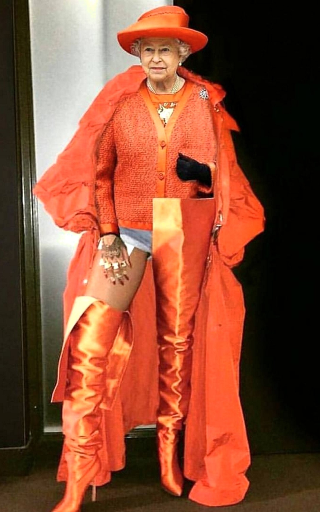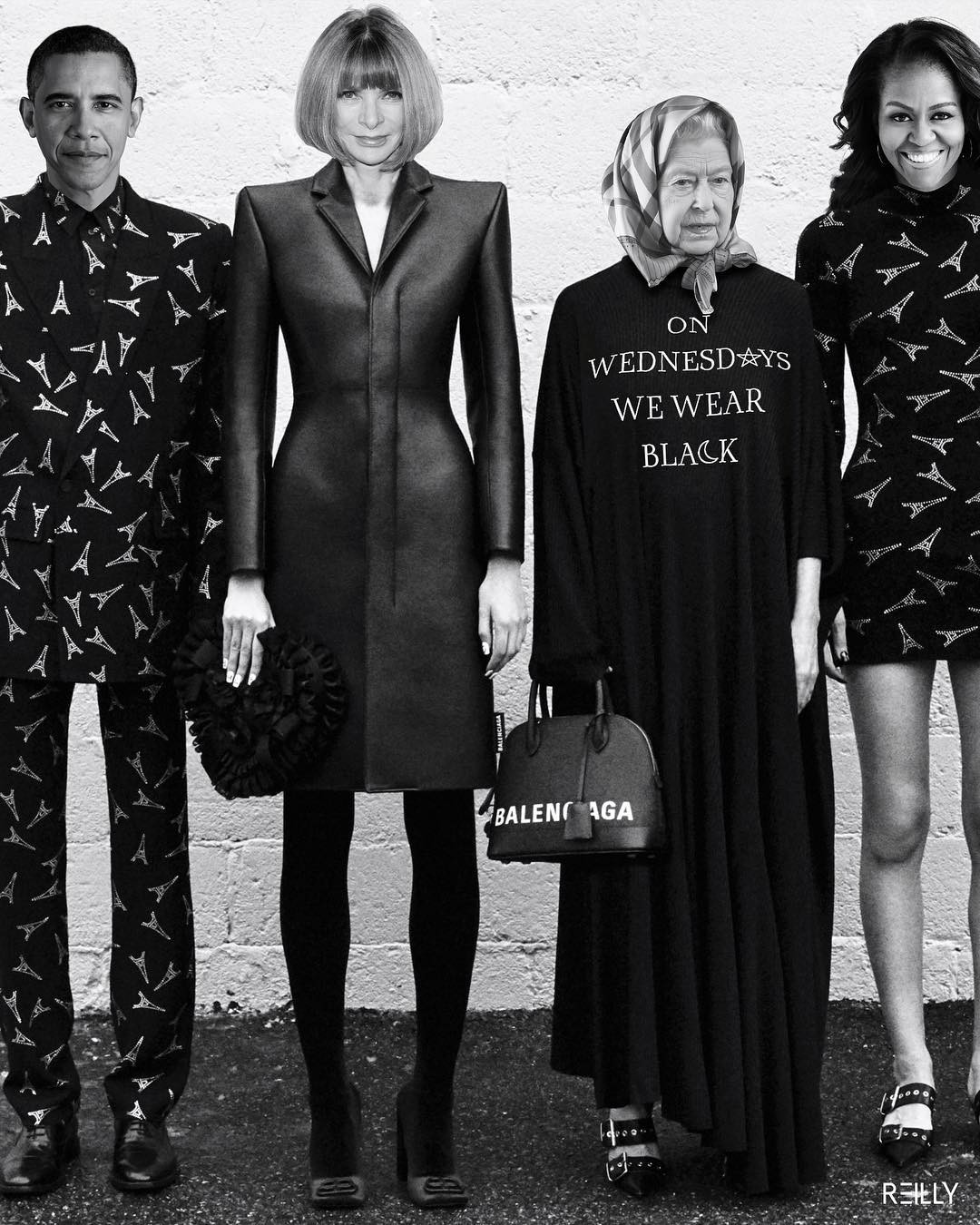 К неофициальному пулу сотрудников Букингемского дворца в последние годы подключились художники @hey_reilly, @freddiemade и @sainthoax. Они находят в стиле Елизаветы II аналогию с образами Рианны, Анны Винтур и героев лукбука Balenciaga и виртуально примеряют к ее шляпкам платье-яичницу, оранжевые ботфорты и футболку DHL. Вещи, которые противоречат королевскому этикету и точно никогда не войдут в монархический гардероб, все же отлично смотрятся на Елизавете. И самое главное — позволяют подданным увидеть ее по-другому: не исторической личностью, а простой бабулей, которая закупается в Harrods, Selfridges и на Farfetch.