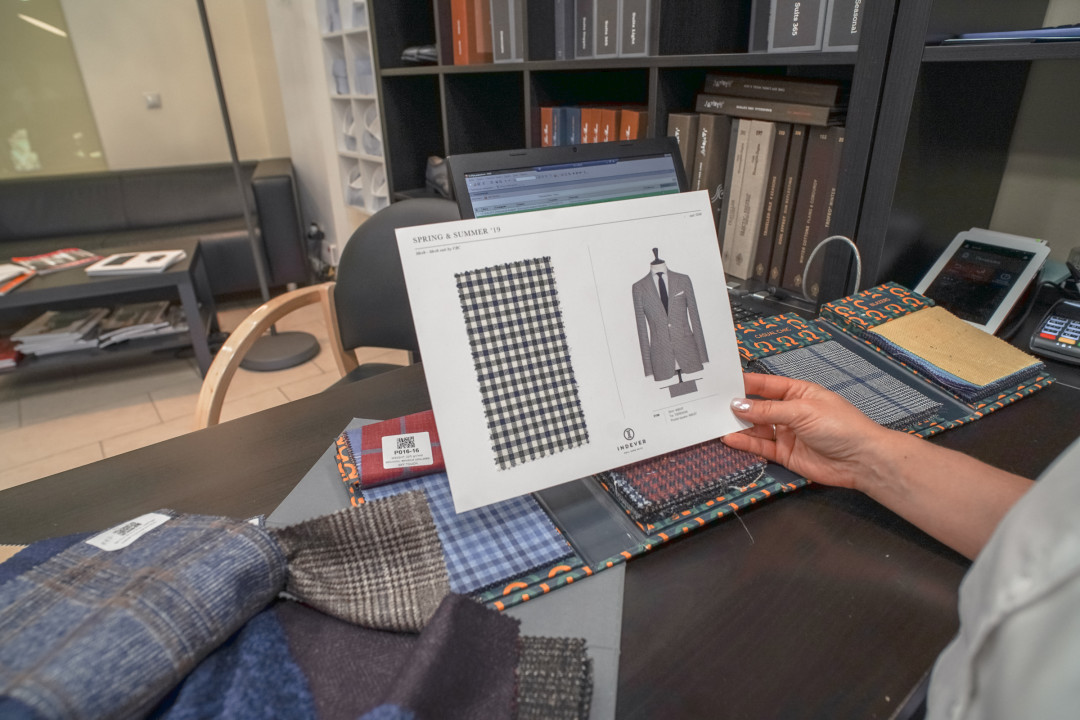Поставщики тканей у нас только итальянцы и англичане, это не пафосный выбор, типа лишь бы не русское, но, как оказалось, у нас нет качественных шерстяных тканей для костюмов. Это и обусловлено исторически: итальянские и английские мануфактуры веками занимаются производством ткани, выращивают овец для сырья в определенных географических условиях, потому что в других местах, как оказалось, шерсть тех же овец получается не такая мягкая и шелковистая, даже вода естественных источников влияет на качество шерсти, а ведь реки не перенести куда хочется. Вообщем много причин, почему мы используем именно эти ткани.